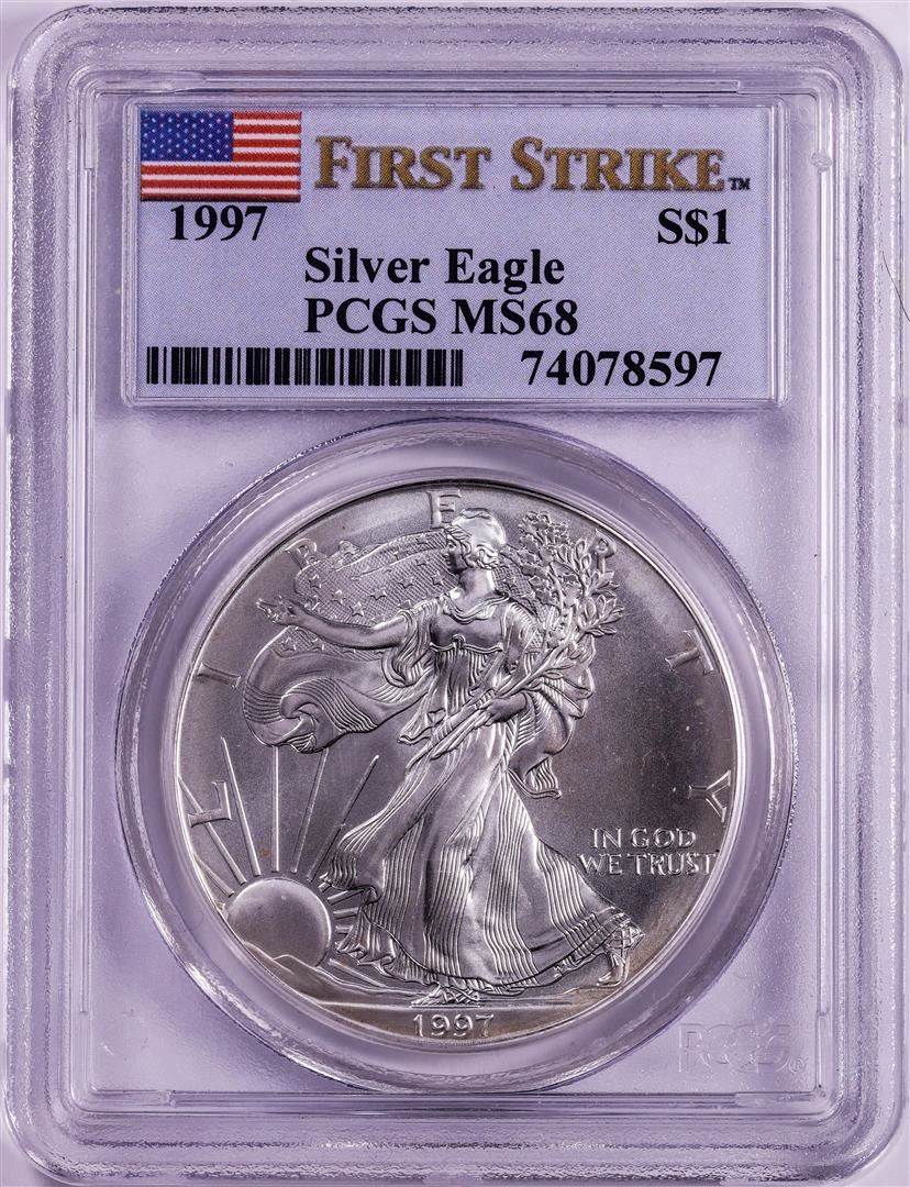 One 1997 $1 American Silver Eagle Coin PCGS MS68 First Strike. PCGS Graded.