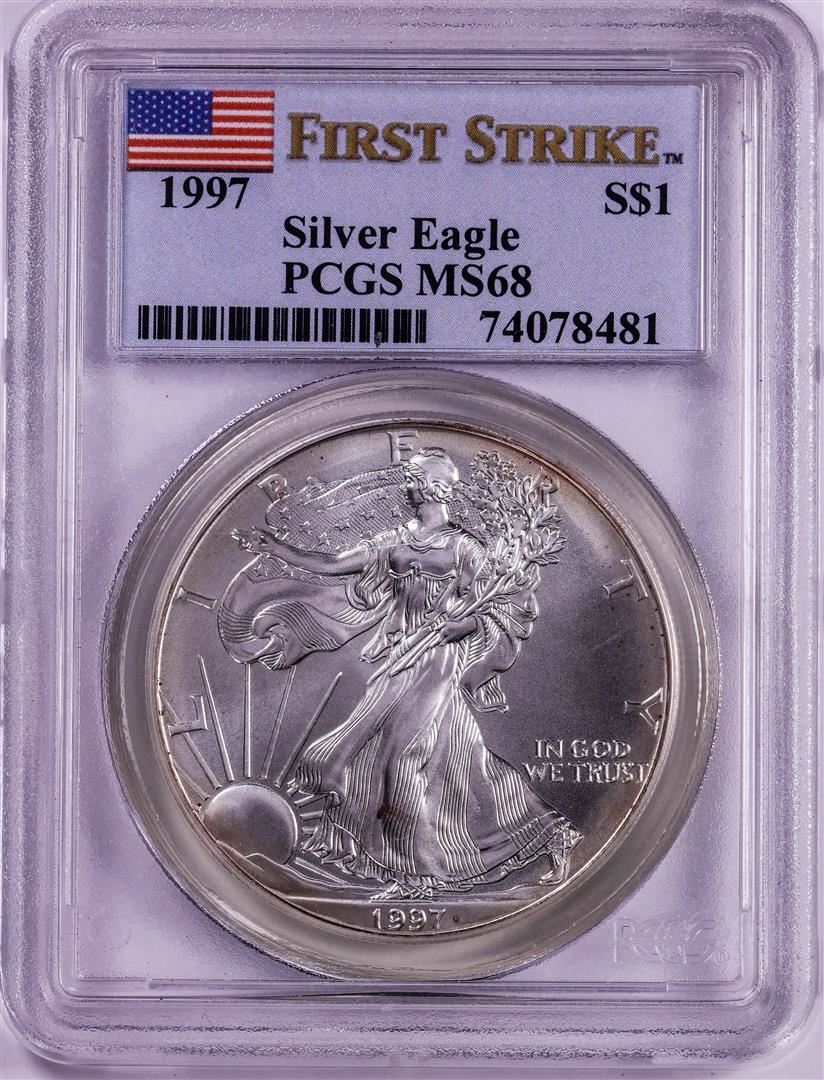 One 1997 $1 American Silver Eagle Coin PCGS MS68 First Strike. PCGS Graded.