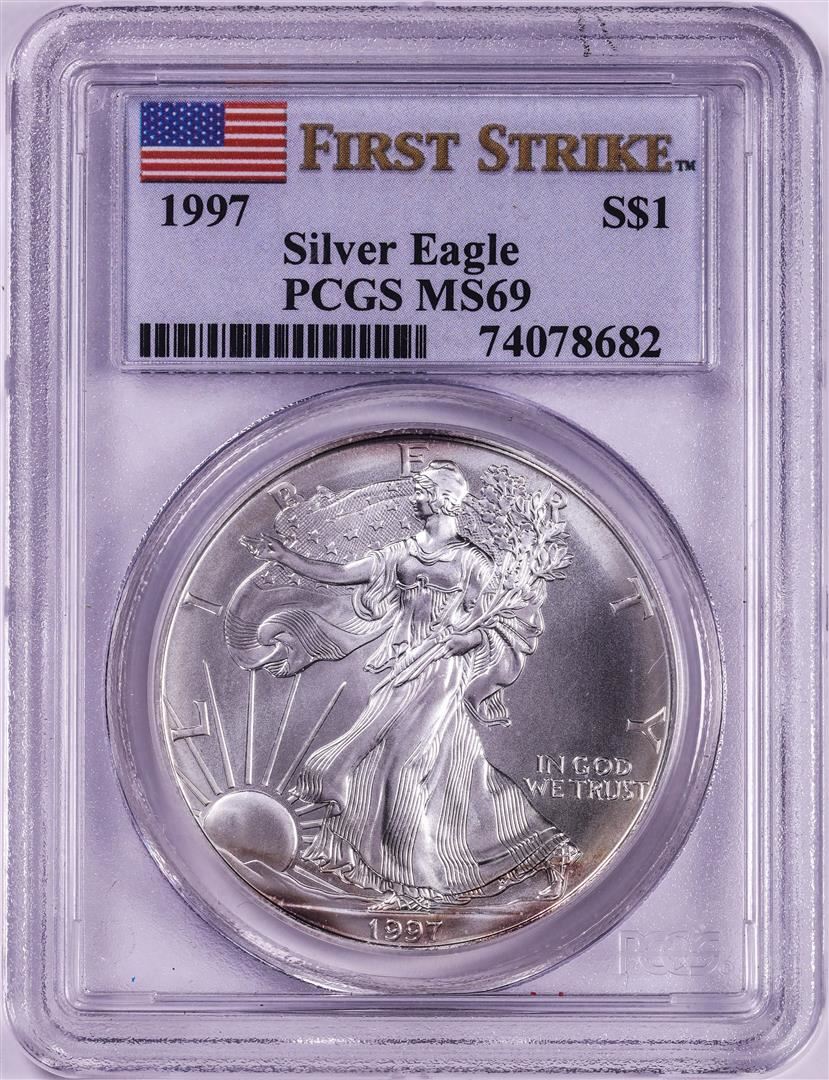 One 1997 $1 American Silver Eagle Coin PCGS MS69 First Strike. PCGS Graded.