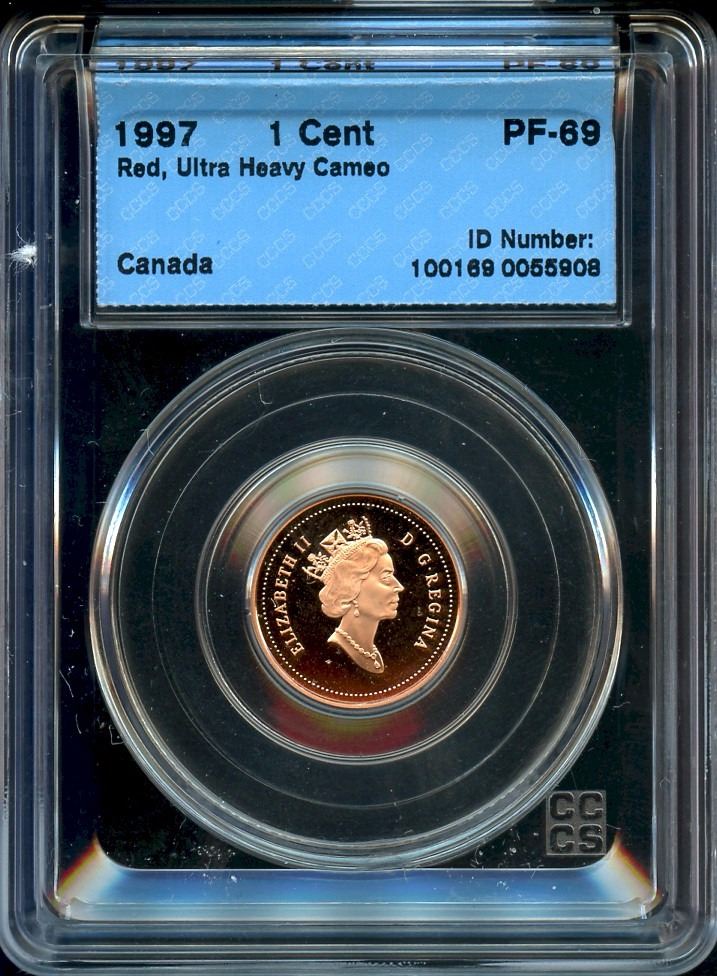 1997 1¢, CCCS PF-69 Red Ultra Heavy Cameo.