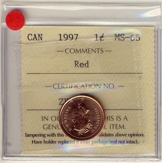 1997 1¢ ICCS MS66 Full Red, A superb GEM example.