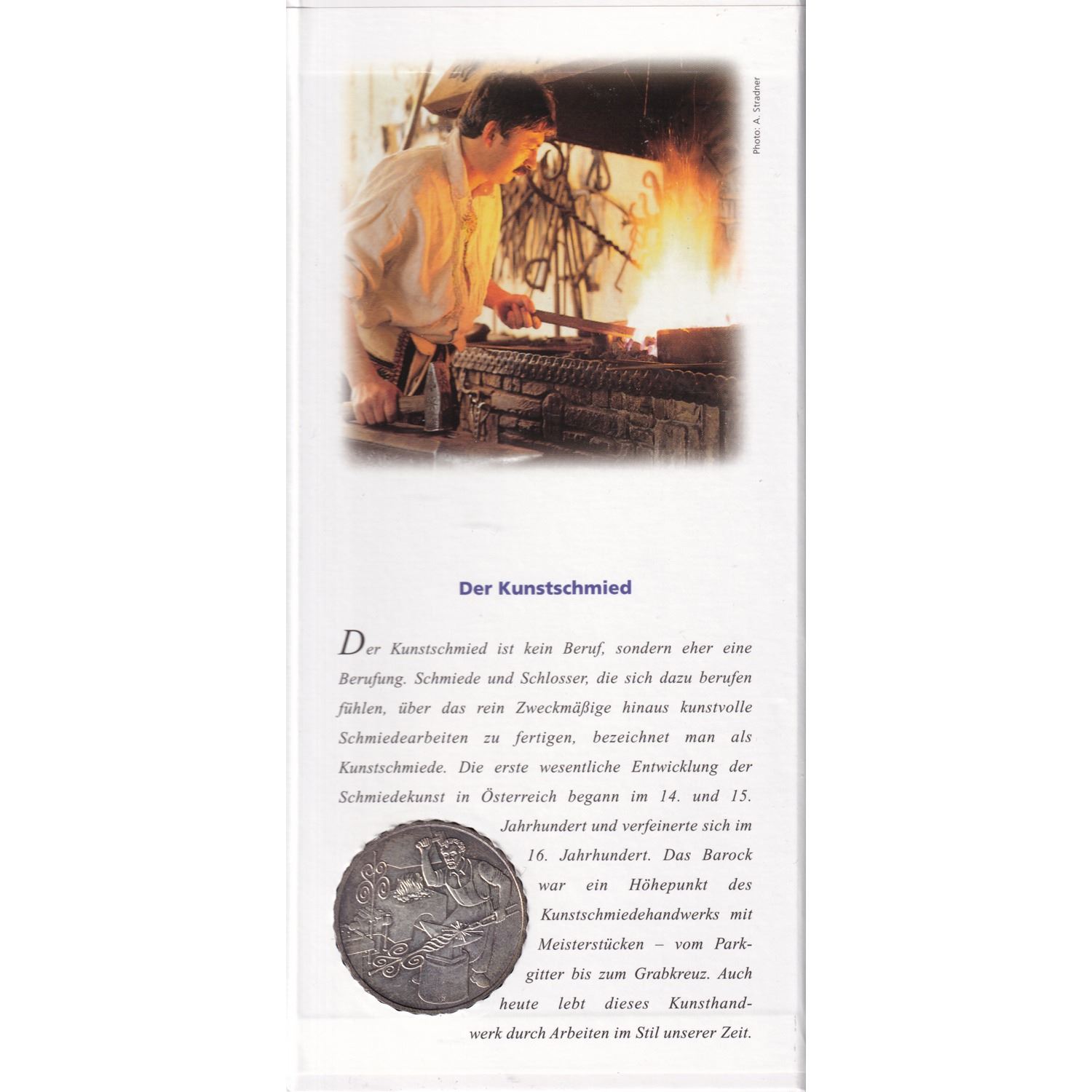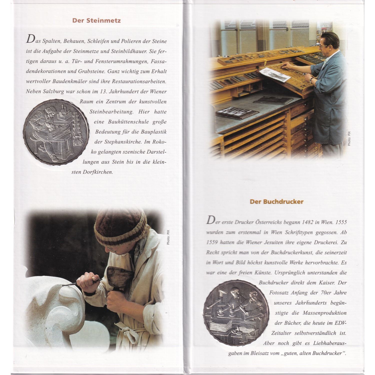 1997-1998 'Austria and its People' 3rd in Series 500 Schilling Sterling Silver 4-coin Set Featuring Different Professions in Austria. You will receive 2x 1997 & 2x 1998 coins weighing 24g each for a total of 2.86oz fine silver (Toned).