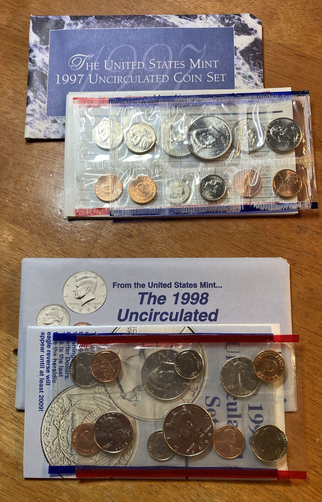1997 & 1998 US Mint UNC Coin P&D Set, Original Envelope