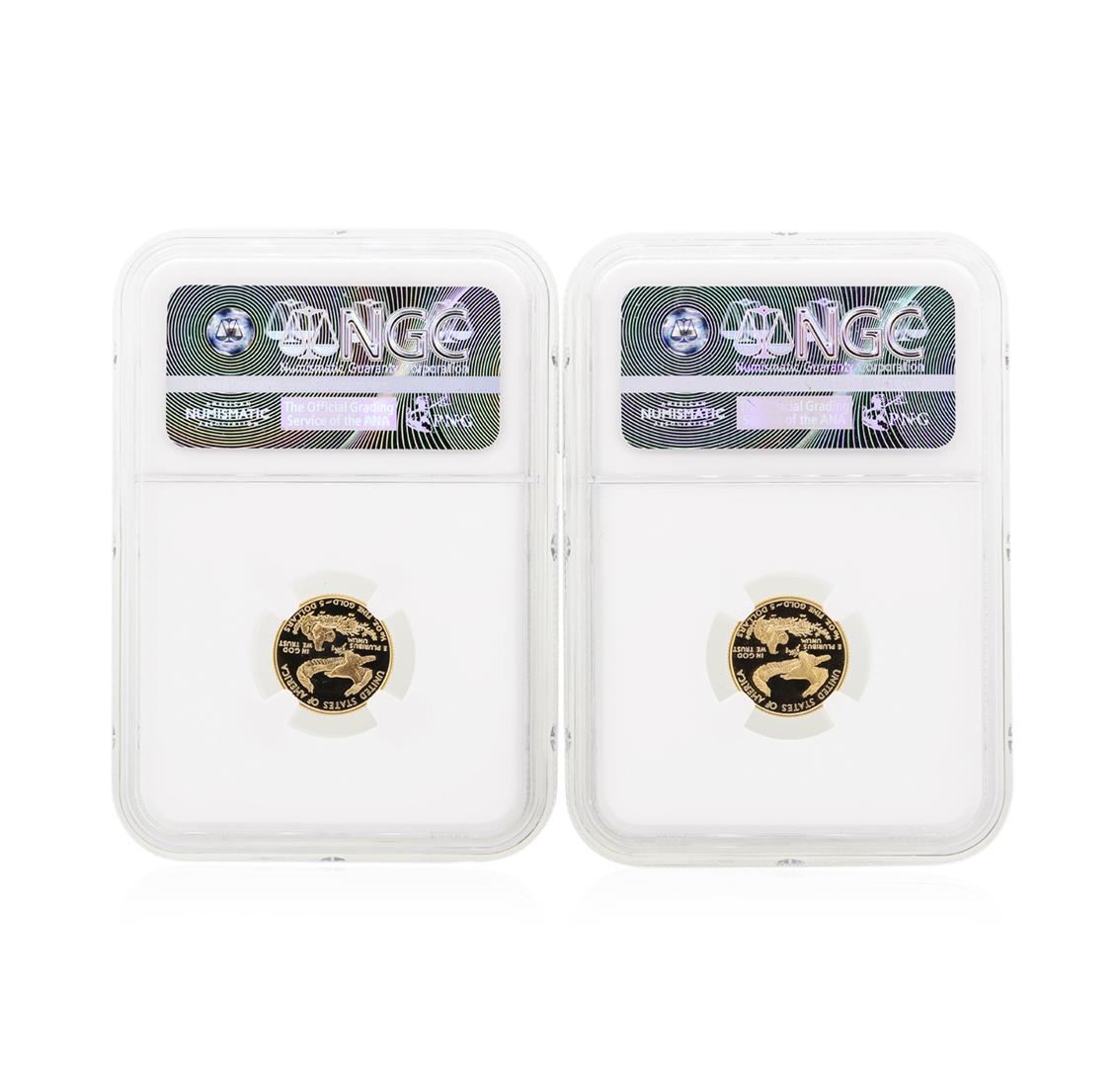 1997-1998-W NGC PF69 Ultra Cameo $5 Eagle Gold Coin Set. The set features: 1997-W NGC PF69 Ultra Cameo $5 Eagle Gold Coin and 1998-W NGC PF69 Ultra Cameo $5 Eagle Gold Coin.