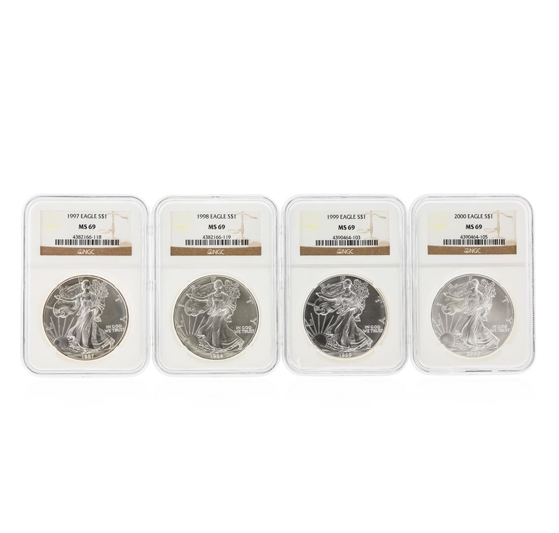 One 1997-2000 $1 American Silver Eagle Coin Set NGC MS69. NGC Certified.