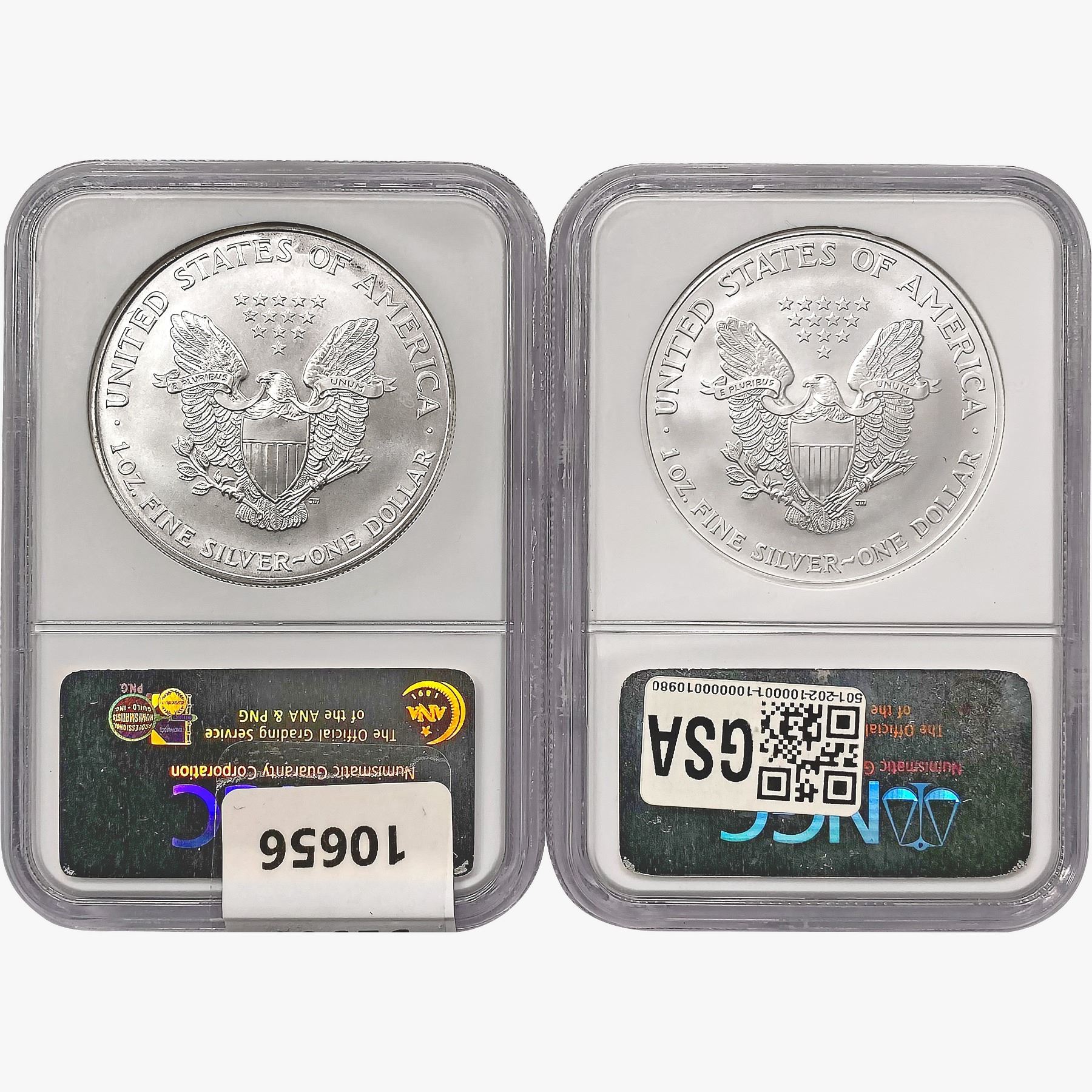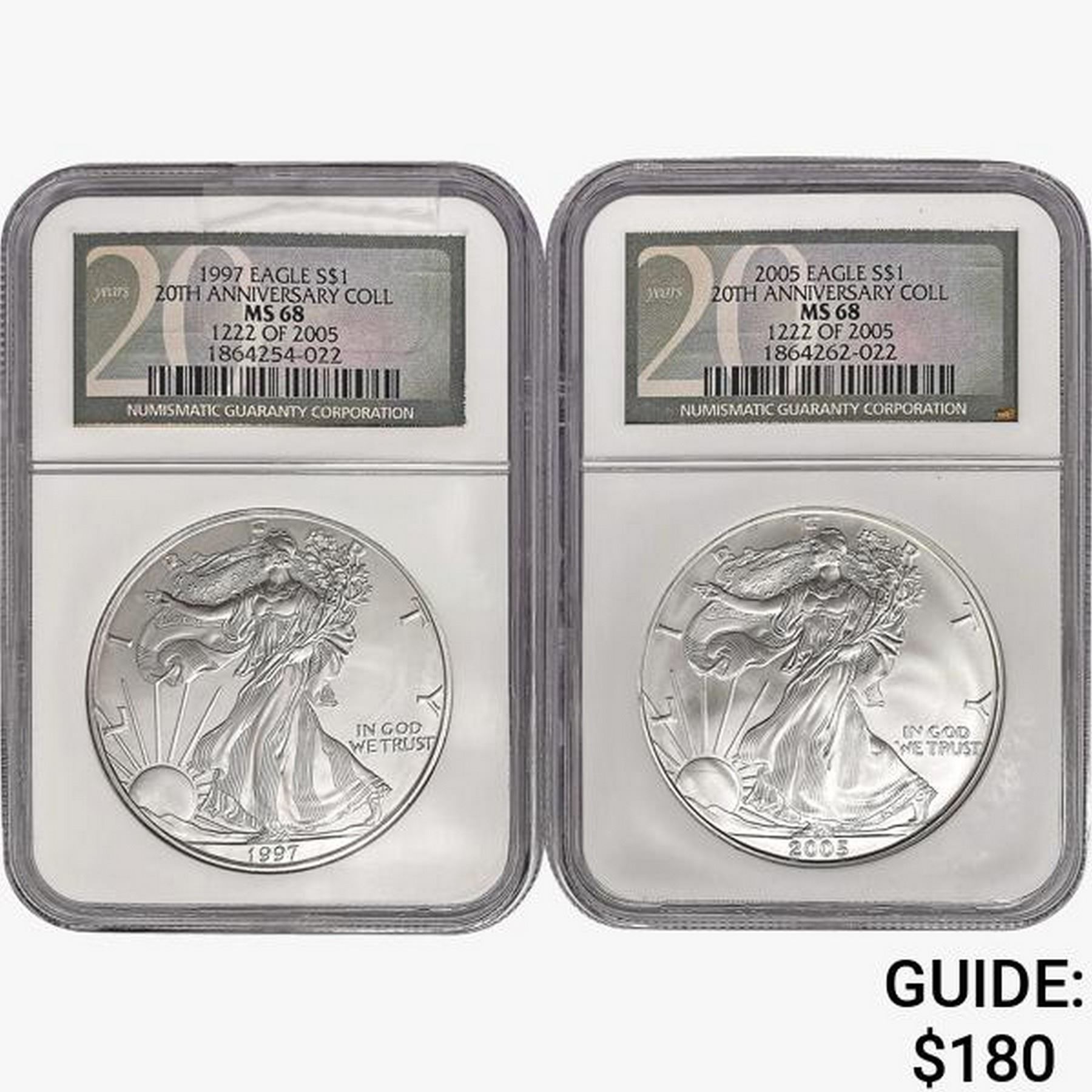 1997 & 2005 Silver Eagle NGC MS68