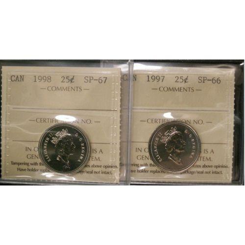 1997 25¢ SP-66 and 1998 25¢ SP-67 both ICCS graded