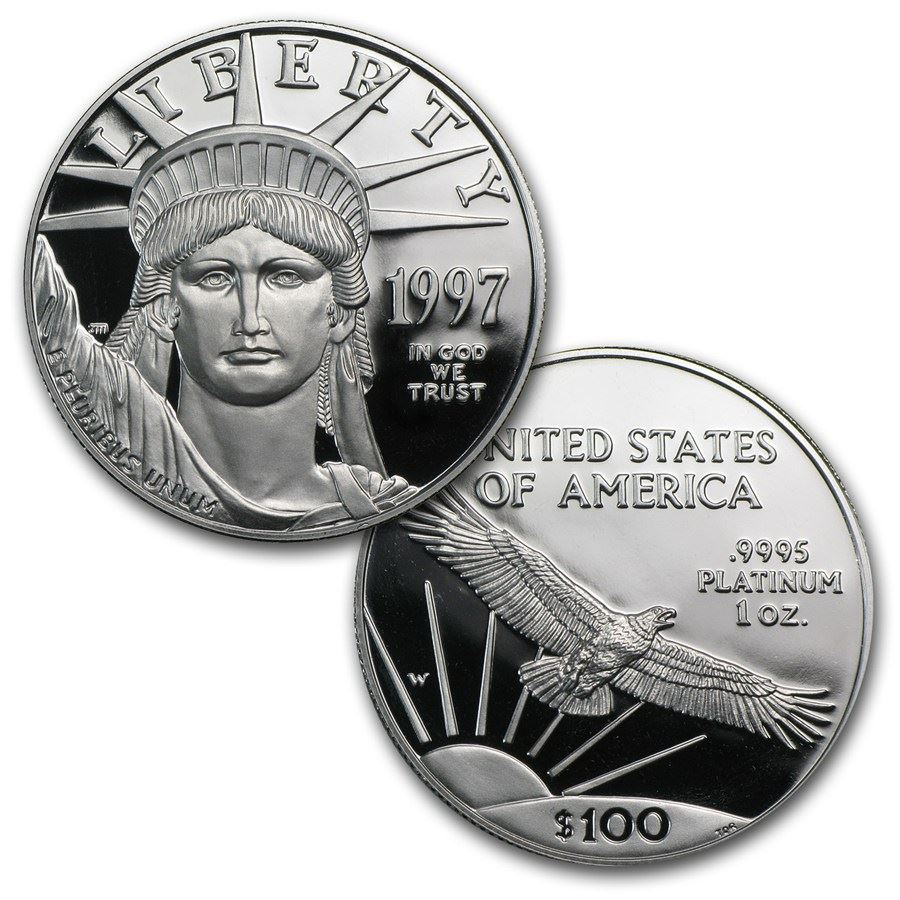 Product ID: 14069 Year: 1997 Grade: Proof Grade Service: None Denomination: Varies Mint Mark: W - West Point Metal Content: 1 troy oz Purity: .9167 Manufacturer: U.S. Mint Thickness: Varies mm Diameter: Varies mm