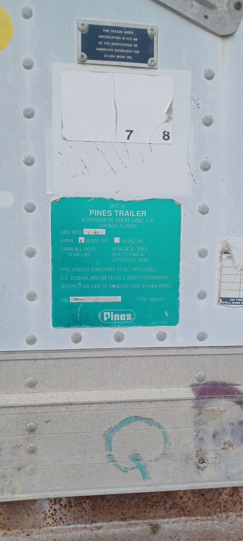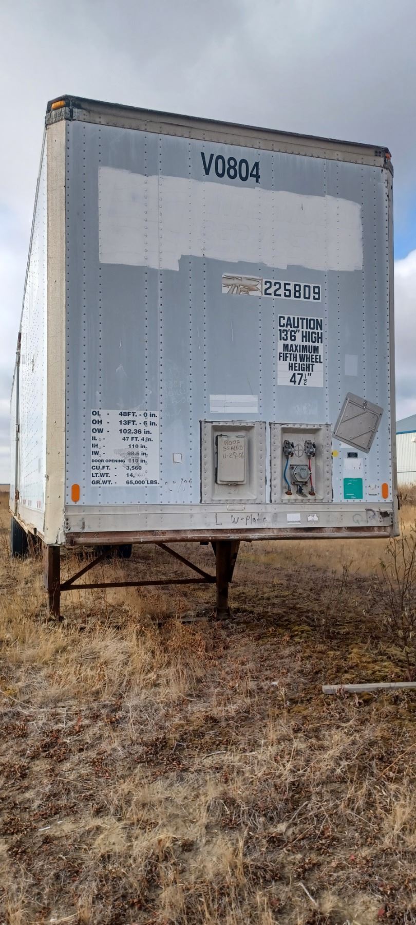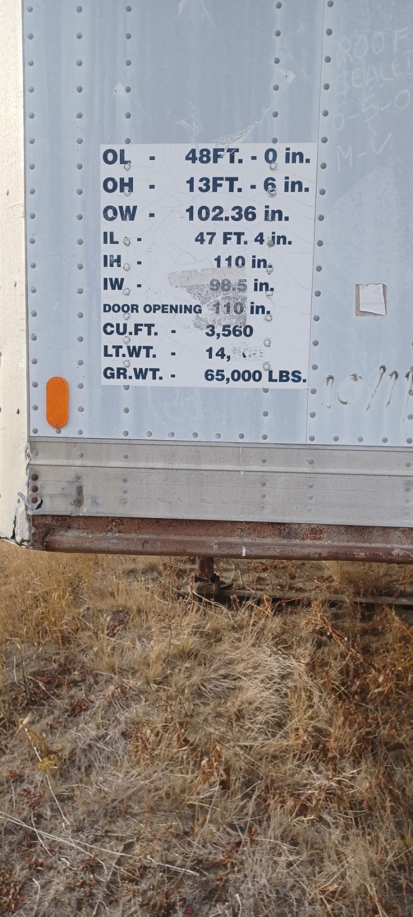 1997 48 FT GREAT DANE STORAGE SEMI TRAILER VAN VIN 1PNV482B2WG305546 UNIT MAYBE BE MOVABLE. TIRES HOLD ATR UNIT WAS DRIVEN ONTO CURRENT SITE IN 2020 AND HAS NOT MOVED SINCE. VAN DOES NOT LEAK AND REAR DOORS WORK BUT DO HAVE RUST DAMAGE