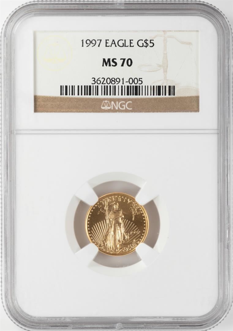 One 1997 $5 American Gold Eagle Coin NGC MS70. NGC Certified.