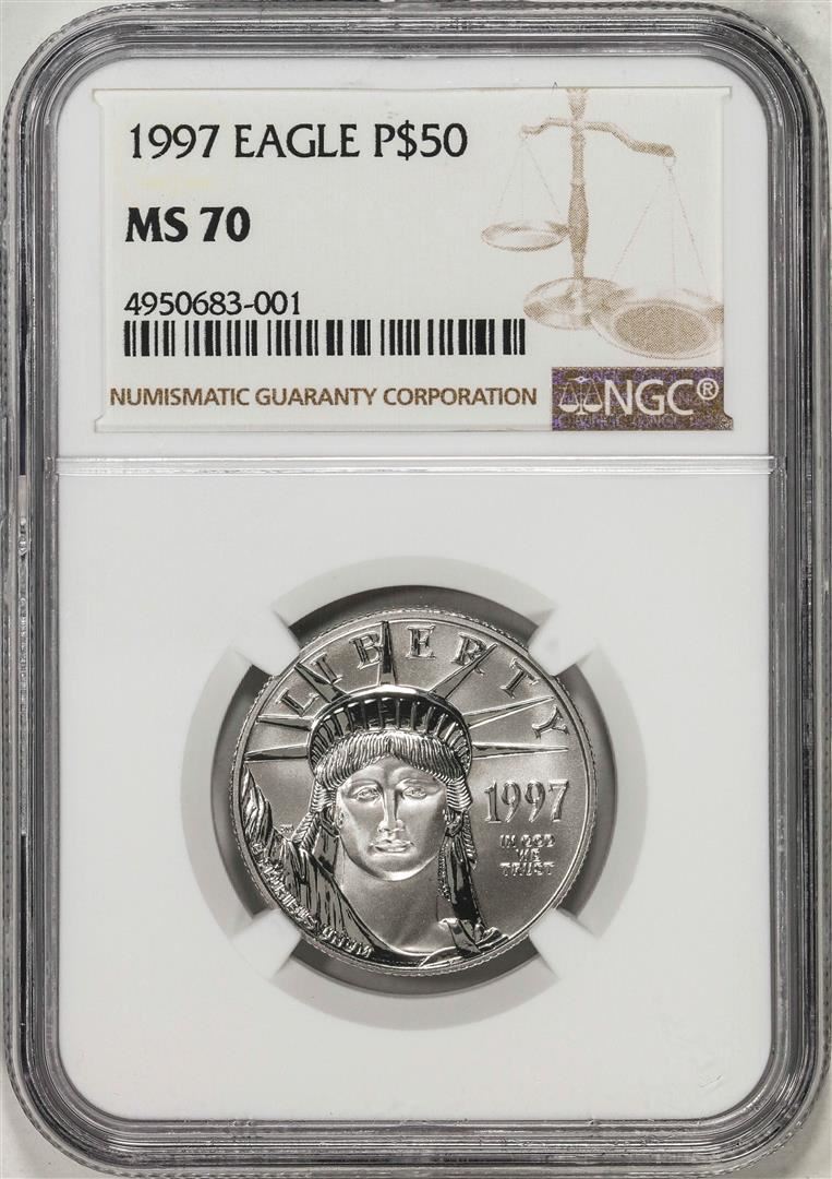 One 1997 $50 Platinum American Eagle Coin NGC MS70. NGC Certified.