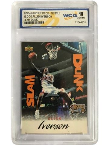 1997–98 Upper Deck Nestle #SD Dash 30 Allen Iverson "slam dunk" 76ers trading card. World class grading graded.