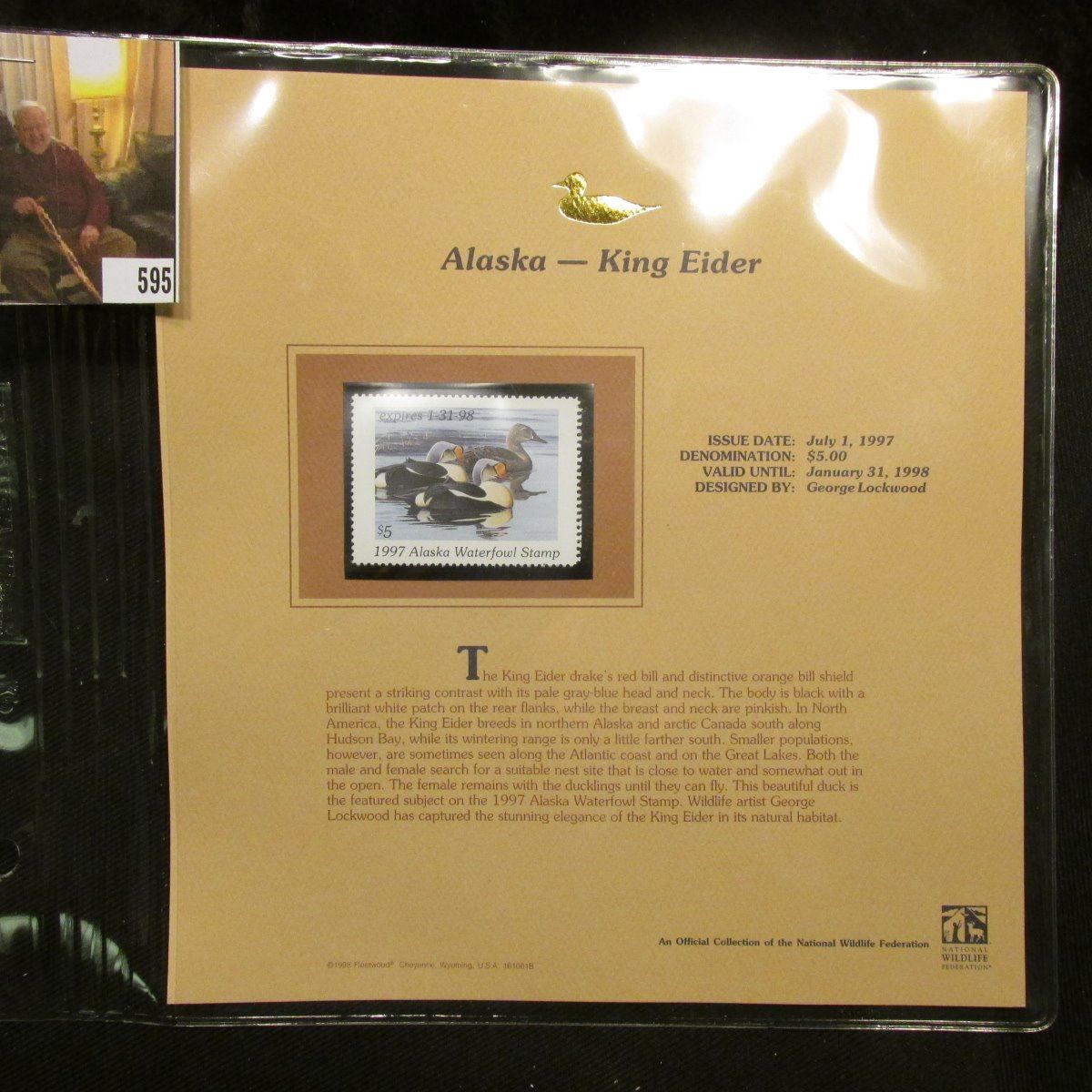 1997 Alaska $5 Waterfowl Stamp, King Eider, Mint, unused, in original holder with literature.