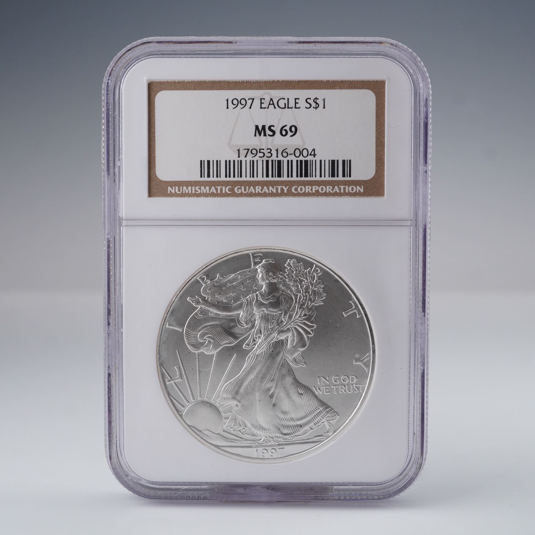 1997 American Eagle Silver Dollar MS69 NGC Graded Coin