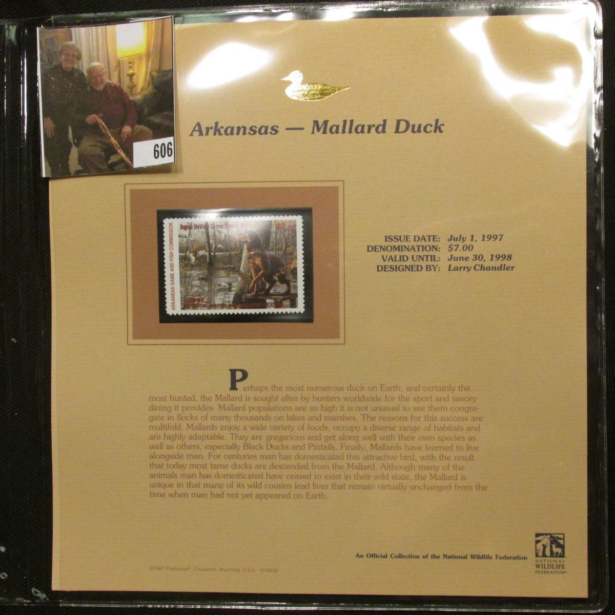 1997 Arkansas $7.00 Waterfowl Stamp, Mallard Duck, Mint, unused, in original holder with literature.