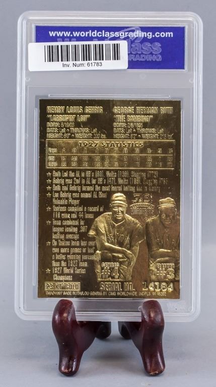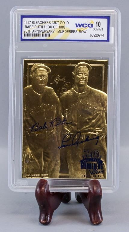 1997 Bleachers 23kt gold sports card. Featuring Babe Ruth and Lou Gehrig. Printed signatures.