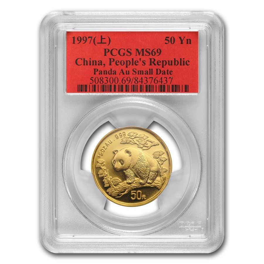 1997 China 1/2 oz Gold Panda MS-69 PCGS (Small Date)