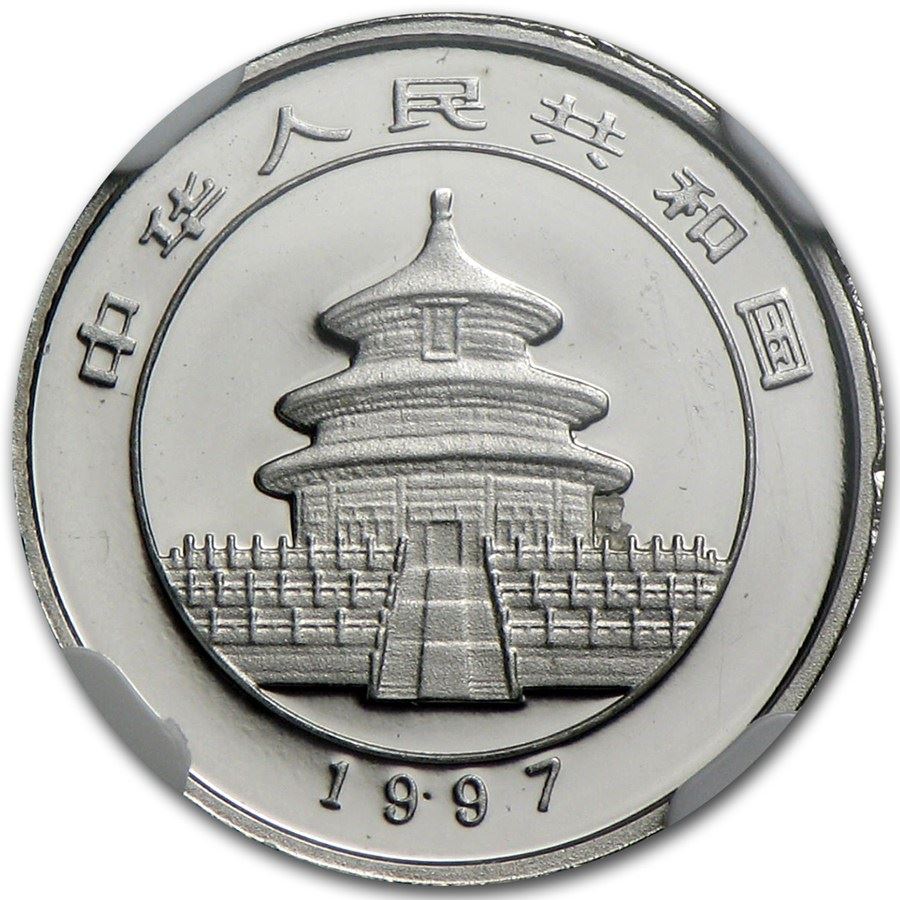 #82165 Year: 1997 Grade: PF-66 Grade Service: NGC Denomination: 5 Yuan Mint Mark: None Metal Content: 0.05 troy oz Purity: .9995 Manufacturer: Shanghai Mint Thickness: 0.83 mm Diameter: 13.9 mm