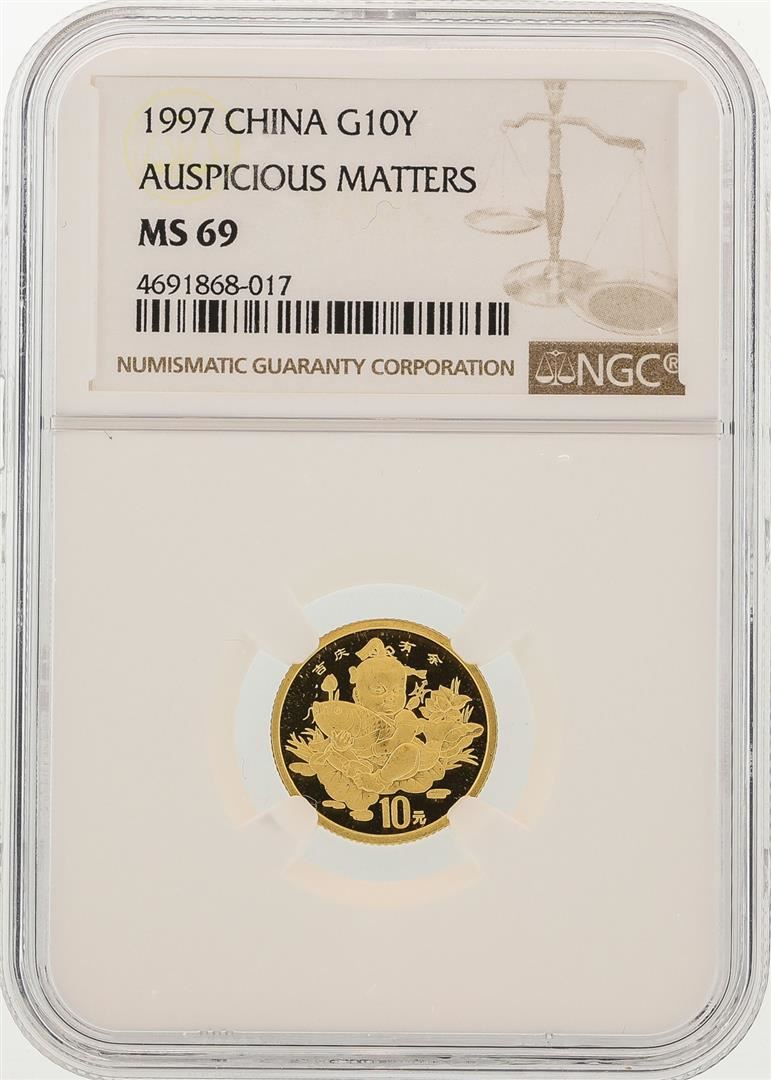 One 1997 China 10 Yuan Auspicious Matters Gold Coin NGC MS69 . NGC Certified.