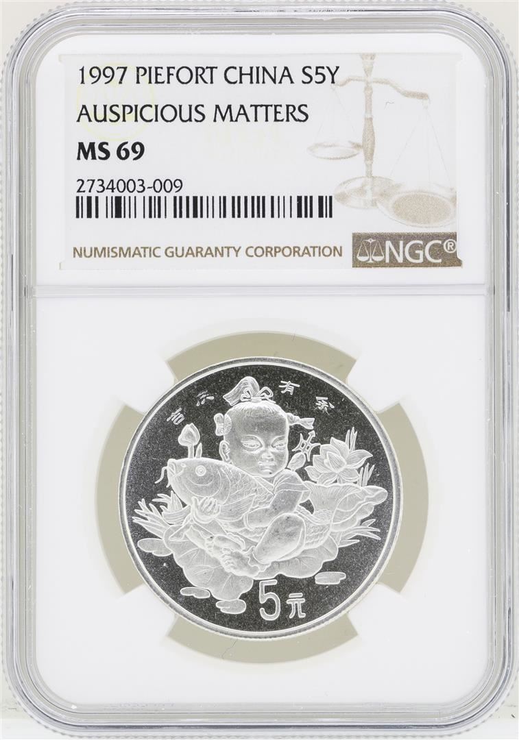 One 1997 China 5 Yuan Piefort Auspicious Matters Silver Coin NGC MS69. NGC Certified.