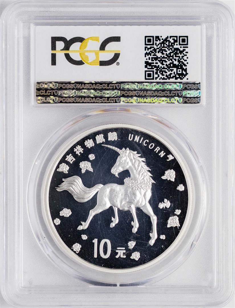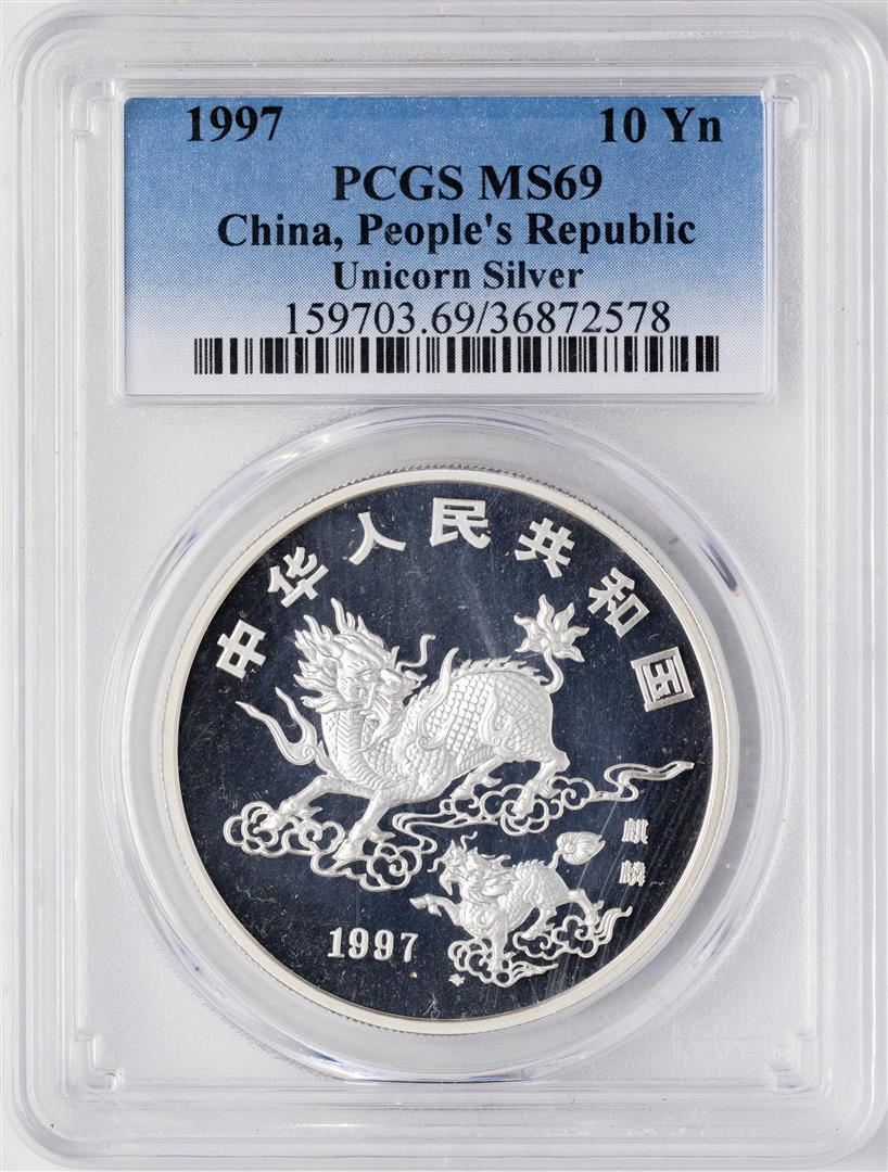 One 1997 China People's Republic 10 Yuan Unicorn Silver Coin PCGS MS69. PCGS Graded.