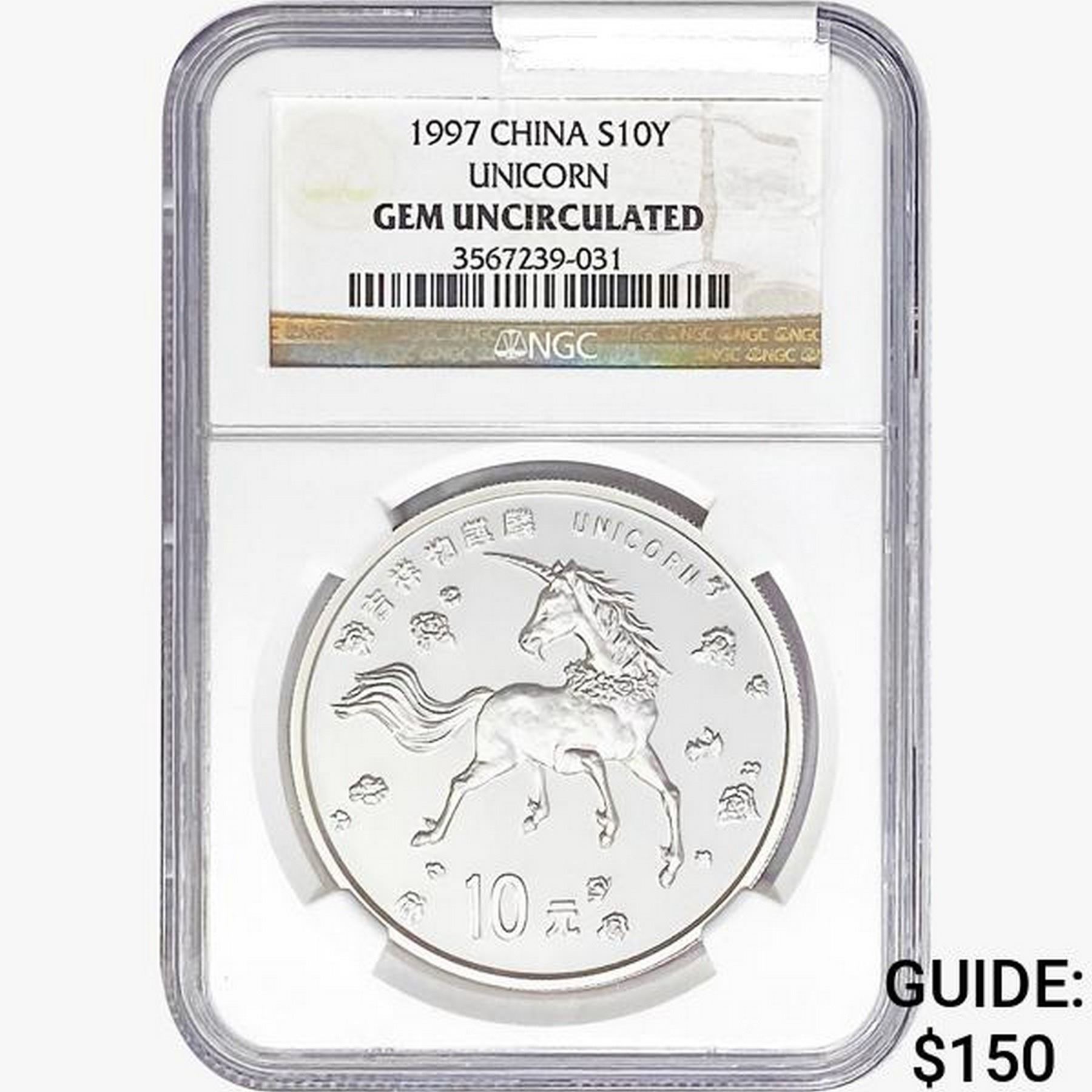1997 China S10Y Unicorn NGC GEM UNC