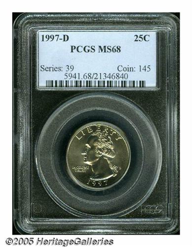 <B>1997-D<25C> MS68 PCGS.</B></I> A needle sharp example that has been spared from all visible signs of contact. Population: 8 in 68, 0 finer (3/05).<BR><I>From The Gary Kramer Collection of Washington Quarters.</B></I>