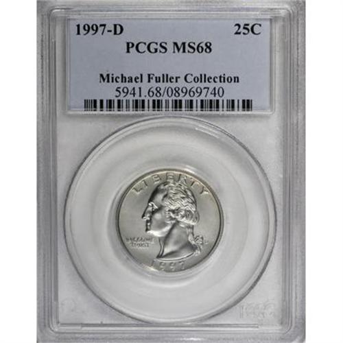 <B>1997-D 25C MS68 PCGS.</B></I> Razor-sharp striking details and virtually pristine surfaces are attributes of this highly lustrous example. Essentially untoned with accents of steel-green in the fields. Population: 11 in 68, 0 finer (10/07). <BR><I>From The Michael Fuller Collection.</B></I><BR><BR><B>Coin Engraver:</B> John Flanagan<BR><BR><b>Shipping:</b> Coins & Currency (<a target="_blank" href="http://www.heritageauctions.com/common/shipping.php">view shipping information</a>)