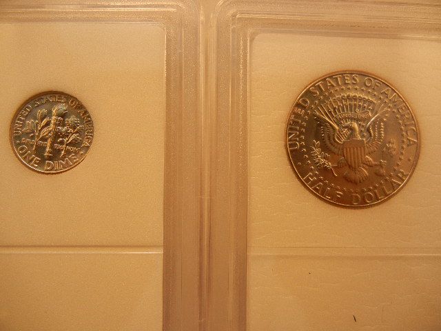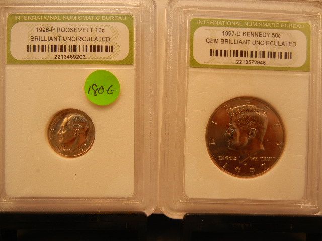 1997-D UNC. Gem BU Kennedy Half Dollar & 1998-P BU UNC. Roosevelt Dime Graded By INB
