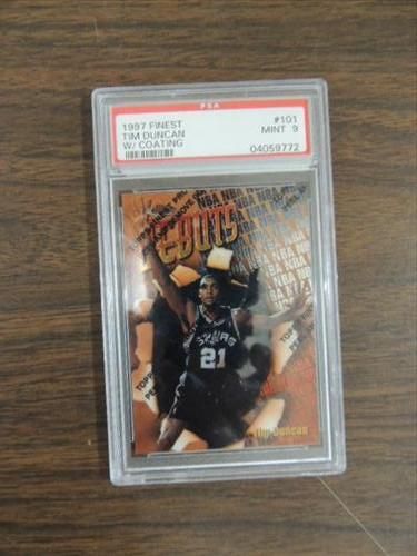 1997 FINEST #101 GRADED BASKETBALL CARD TIM DUNCAN. GRADED BY PSA MINT 9. AS SHOWN. VIEW PICTURE FOR DETAIL.