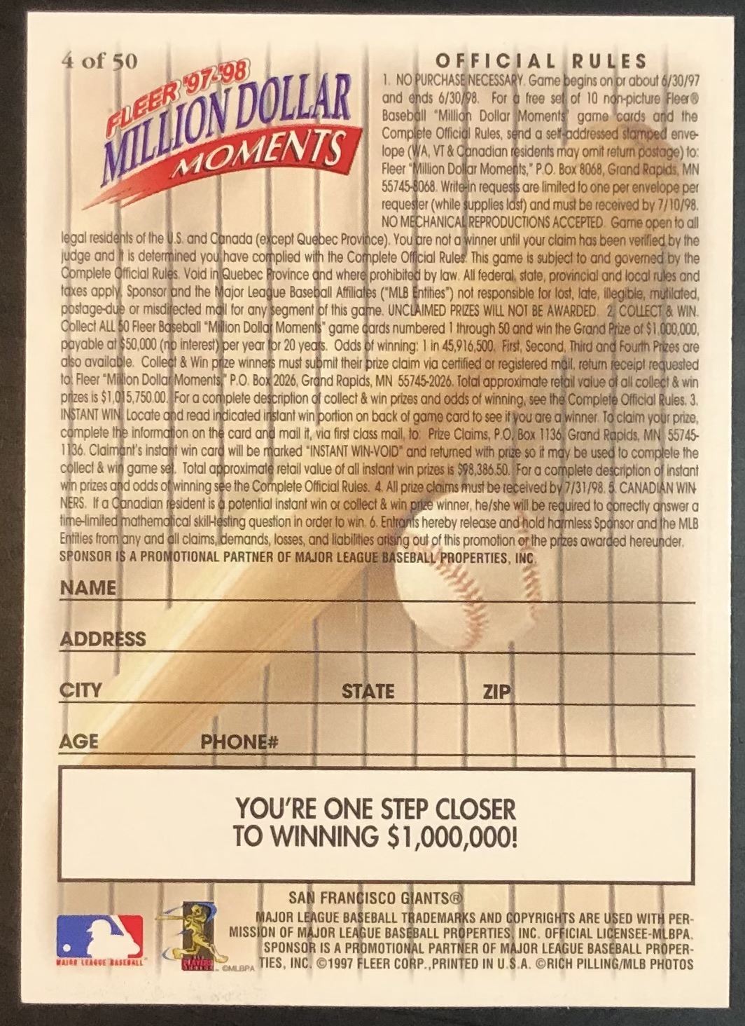 You agree that all sales are final. Upon your becoming the Purchase of an item, that item shall immediately become your responsibility and be at your risk (whether you have paid for that item or not). You agree that Melonville Memorabilia Sports Collectibles Inc. and its employees are not responsible for lost, stolen or damaged items and will not reimburse or discount items for any type of loss. Items must be removed within 3 days of the auction, unless further arrangements have been made. All items are left at your own risk and responsibility.