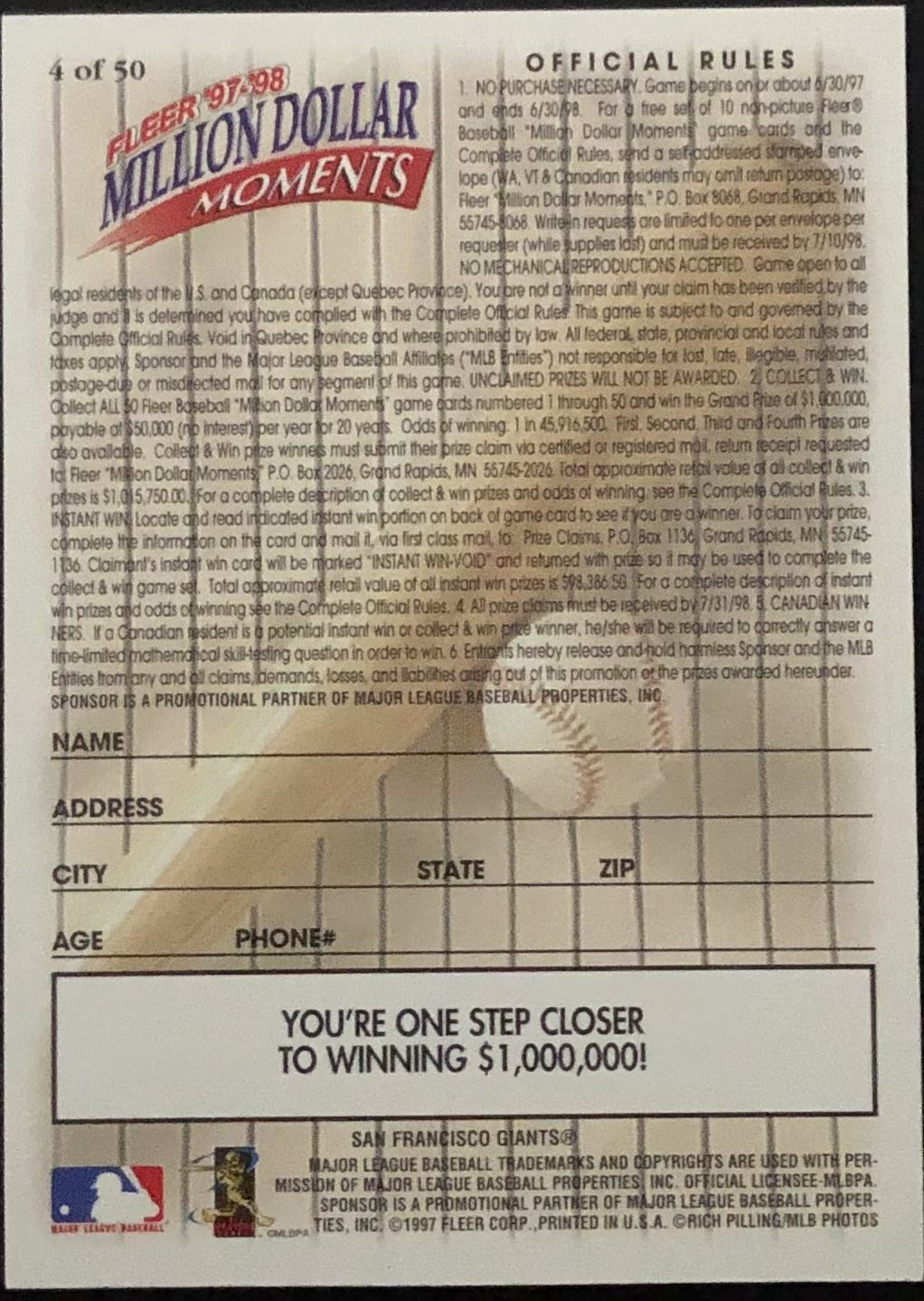 You agree that all sales are final. Upon your becoming the Purchase of an item, that item shall immediately become your responsibility and be at your risk (whether you have paid for that item or not). You agree that Melonville Memorabilia Sports Collectibles Inc. and its employees are not responsible for lost, stolen or damaged items and will not reimburse or discount items for any type of loss. Items must be removed within 3 days of the auction, unless further arrangements have been made. All items are left at your own risk and responsibility.