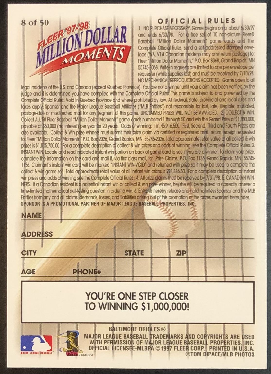 You agree that all sales are final. Upon your becoming the Purchase of an item, that item shall immediately become your responsibility and be at your risk (whether you have paid for that item or not). You agree that Melonville Memorabilia Sports Collectibles Inc. and its employees are not responsible for lost, stolen or damaged items and will not reimburse or discount items for any type of loss. Items must be removed within 3 days of the auction, unless further arrangements have been made. All items are left at your own risk and responsibility.