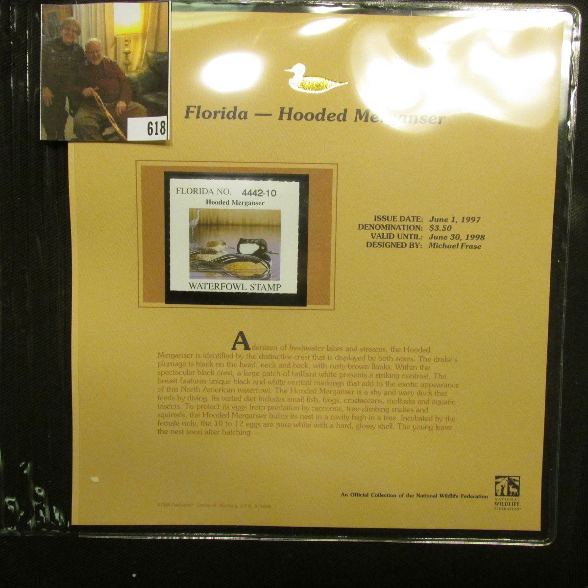 1997 Florida $3.50 Waterfowl Stamp, Hooded Merganser, Mint, unused, in original holder with literature.