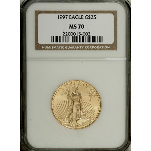 1997 G$25 Half-Ounce Gold Eagle MS70 NGC. NGC Cens