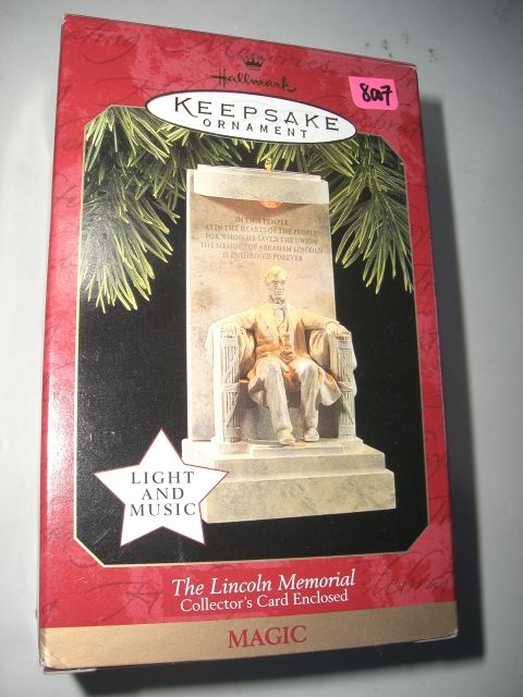 1997 HALLMARK KEEPSAKE ORNAMENT-NEW IN THE BOX/LIGHT & MUSIC *LINCOLN MEMORIAL W/COLLECTOR CARD* ORIGINAL PRICE $24.00!! ORNAMENT CAME OUT OF SAFE!! ***Coin, Currency & All Items Listed in this auction - Grades, Conditions and Values are not Safe Deposit Coins LLC Responsibilty. Grades, Condition and Values are determined by Consigner(s) & Buyers ONLY