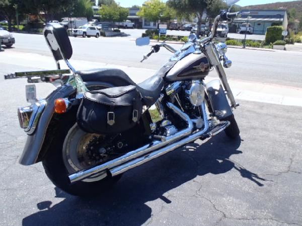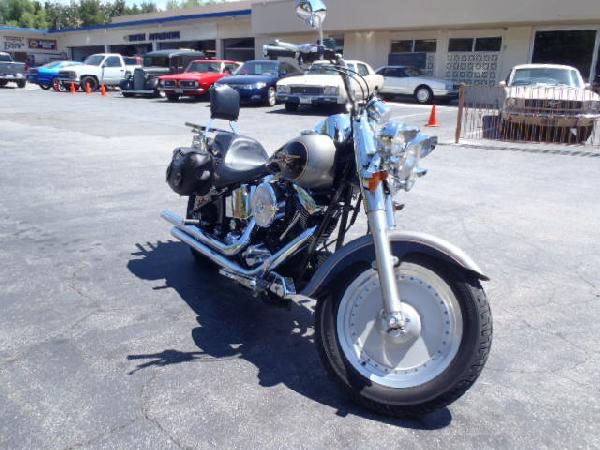 1997 Harley Davidson Fat Boy Motorcycle. As-Is Condition! The Fat Boy is back! One of the most popular style of bikes by Harley. This one-owner Van Nuys bought bike has a powerful V-Twin EVO motor, passenger back rest, Harley soft bags, windshield, solid wheels, Hooker Step-Tune pipes and of course, lots of chrome and goodies to make it cool. All ready to ride.