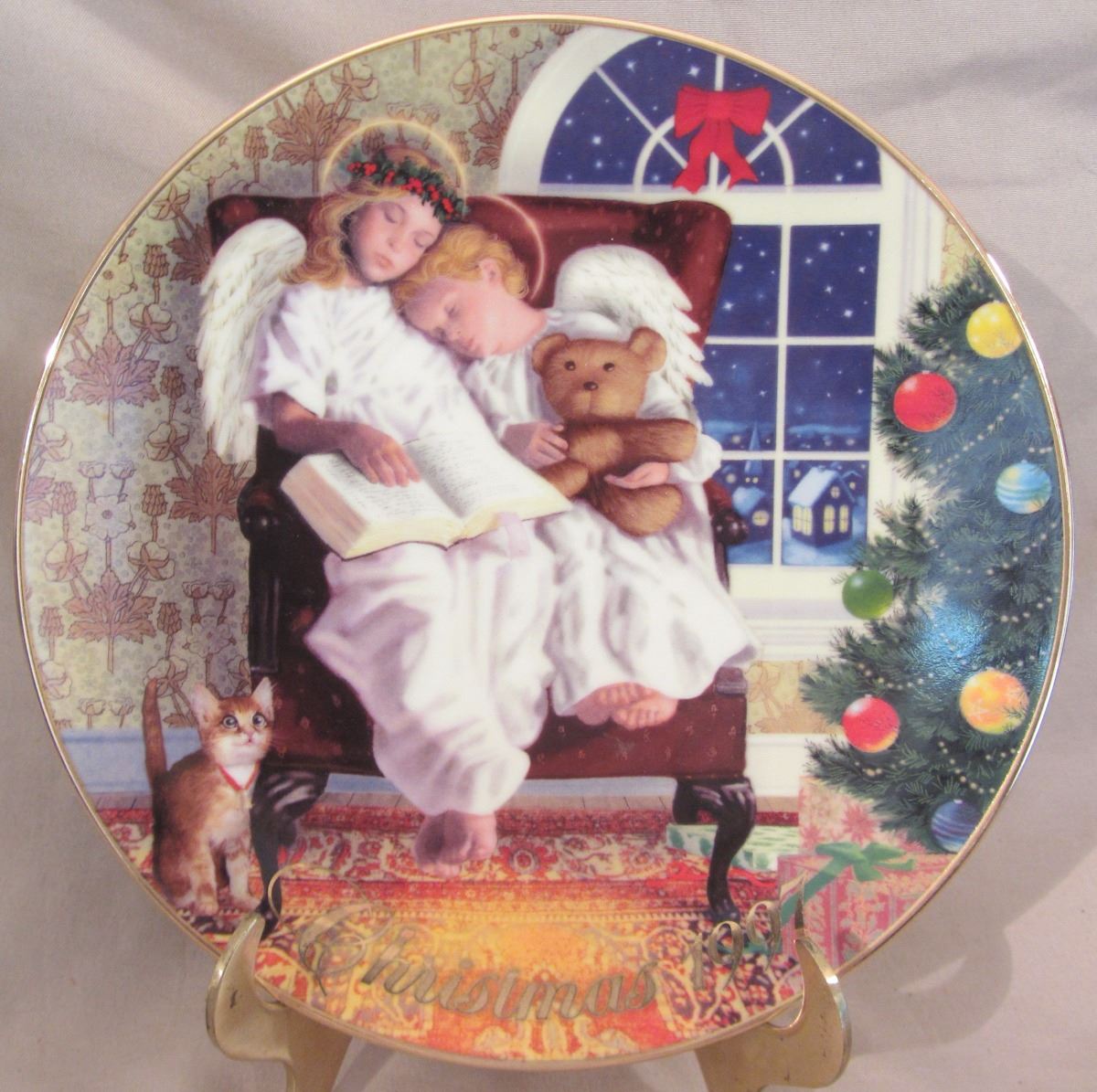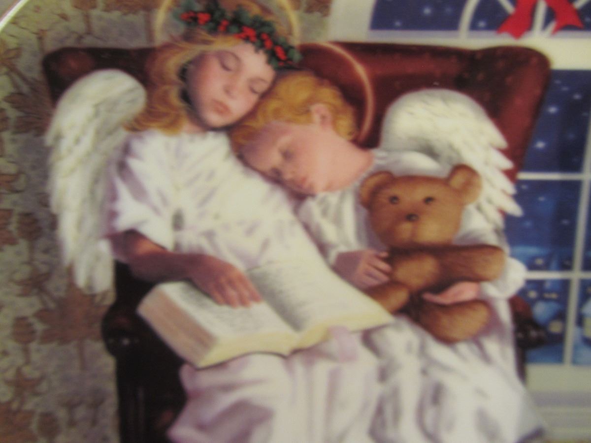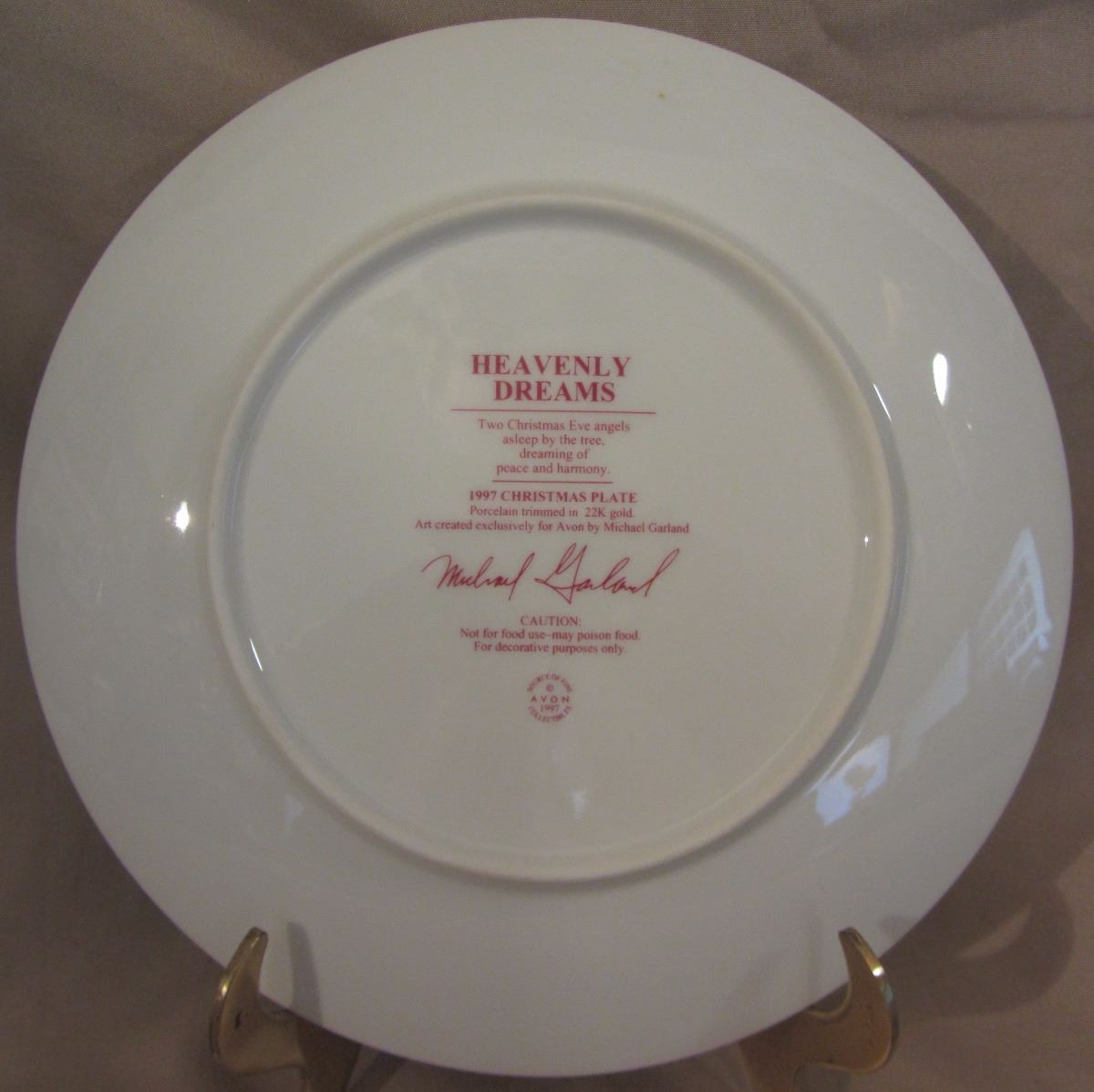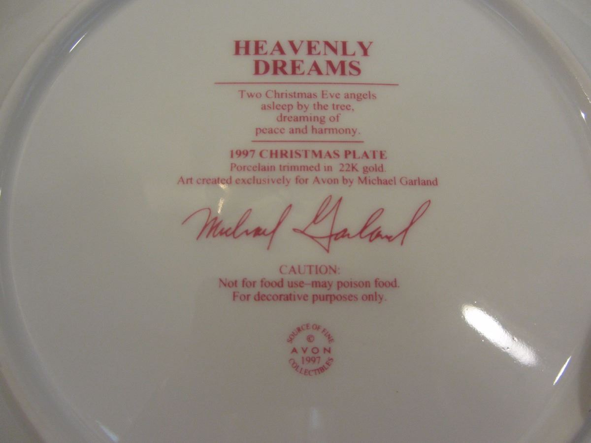 8 1/4" plate, dated 1997 'Heavenly Dreams' Avon exclusive by Michael Garland, trimmed in 22K gold.