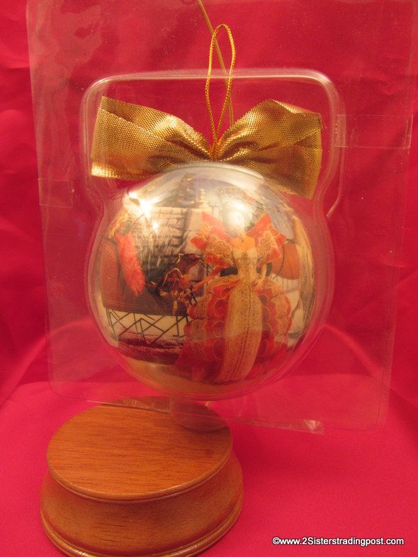 1997 Holiday Barbie 4" decoupage Christmas Ornament includes wooden ornament stand