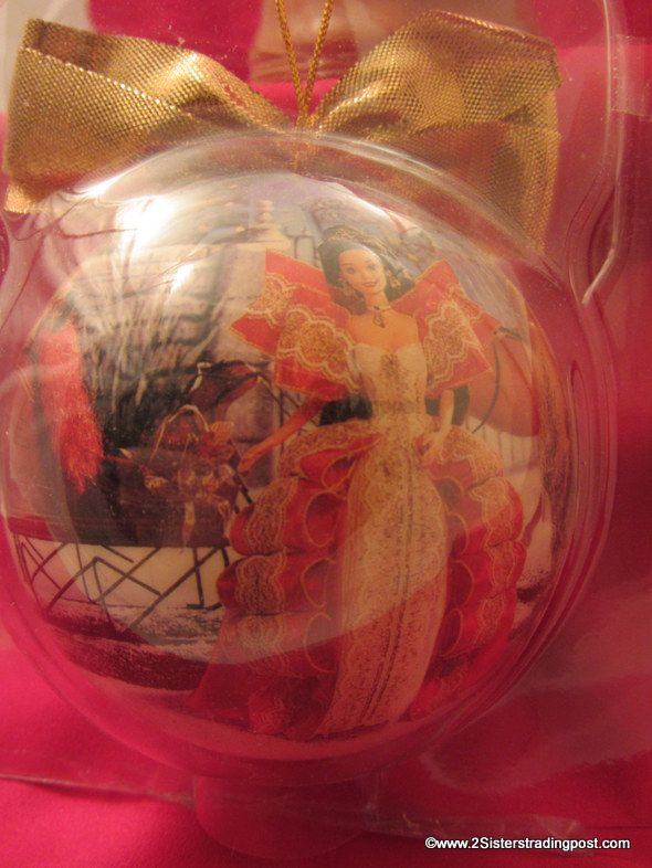 (natural wood color) a Matrix ornament by Mattel, Inc. Barbie is in a gold and red winter gown