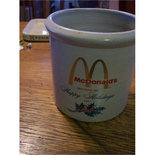 This redwing crock was made for the McDonalds resturants.This is the 1997 one and is in perfect condition.Stands 6 1/4" tall and is 6 1/2" across top.Only so many of these were made each year.Double advertising collectible.I have two more from different years I will be listing also.