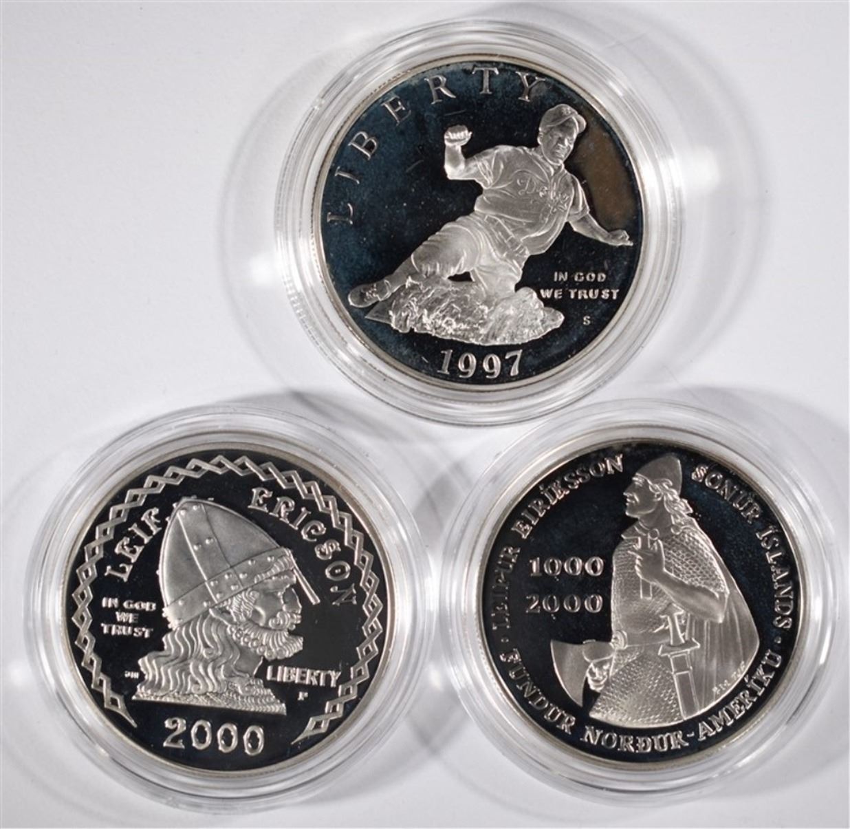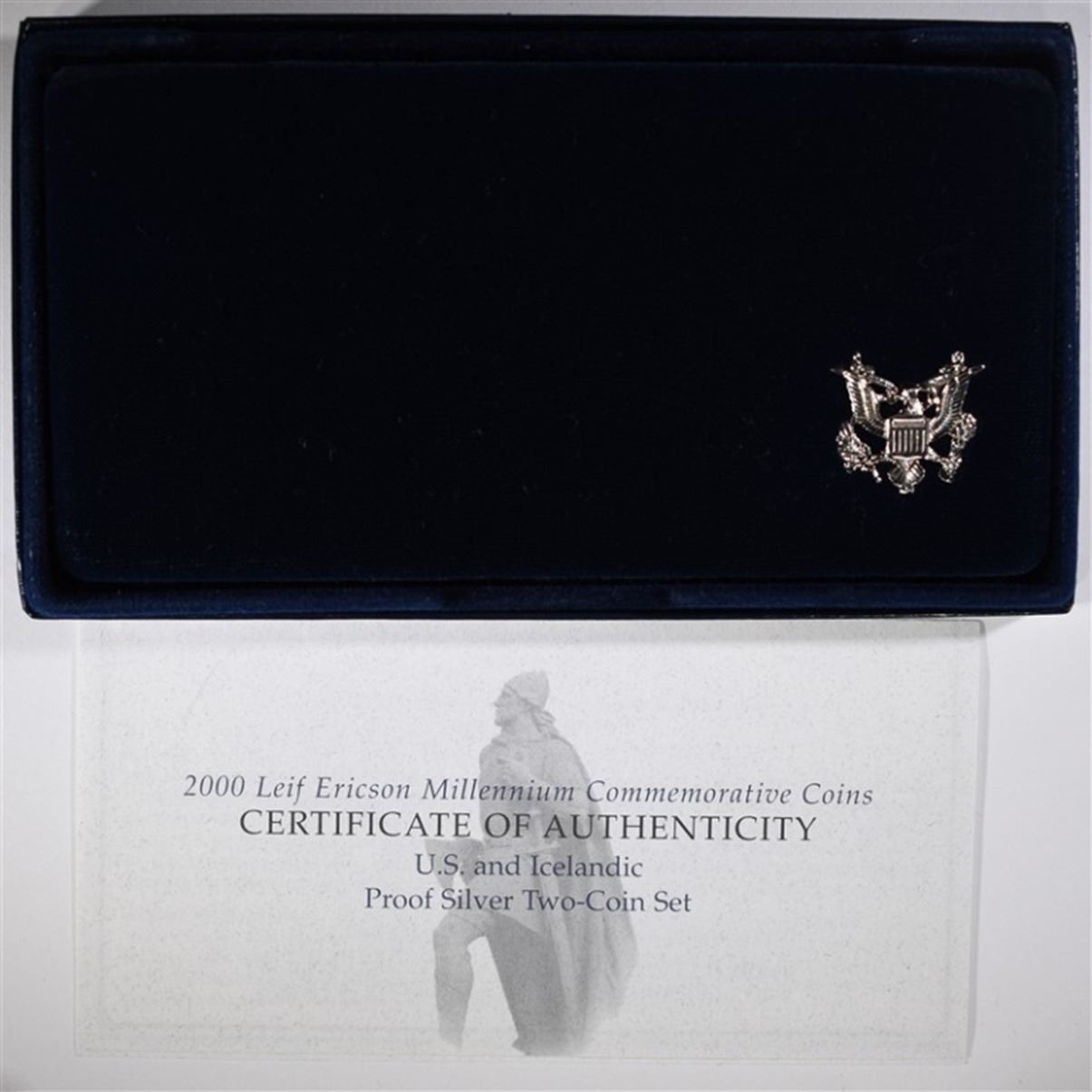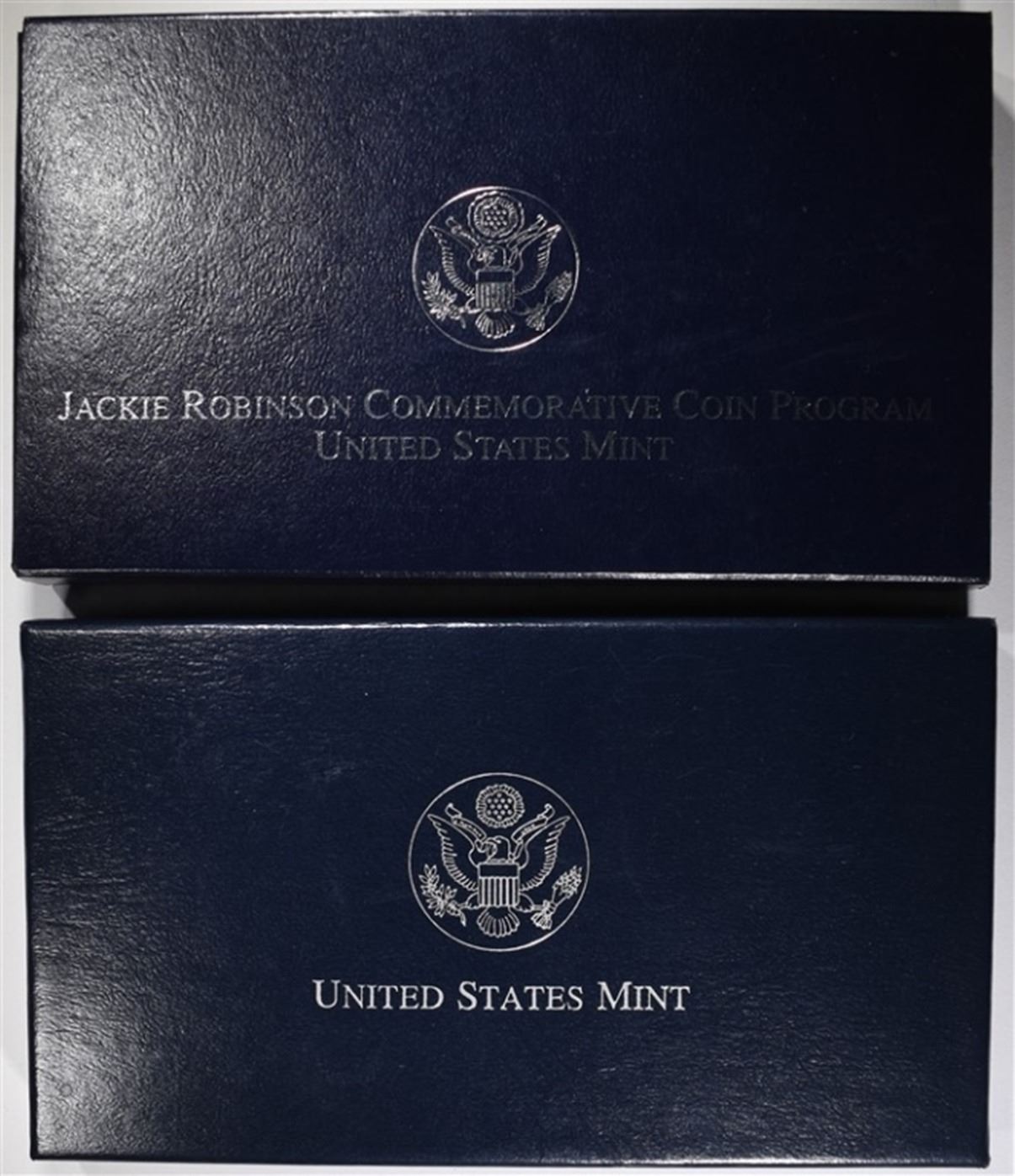 1997 JACKIE ROBINSON & 2000 LEIF ERICSON PROOF COMMEMORATIVE COIN SETS WITH BOX AND COA ESTIMATE $150. - 200.