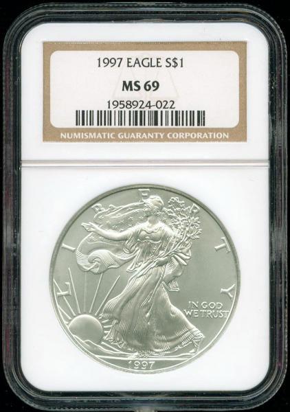 The American Silver Eagle is the official silver bullion coin of the United States. It was first released by the United States Mint on November 24, 1986. It is struck only in the one-troy ounce size which has a nominal face value of one dollarand is guaranteed to contain one troy ounce of 99.9% pure silver. It is authorized by Title II of Public Law 99-61 (Liberty Coin Act, approved July 9, 1985) and codified as 31 U.S.C. § 5112(e)-(h). Its content, weight, and purity are certified bythe United States Mint.