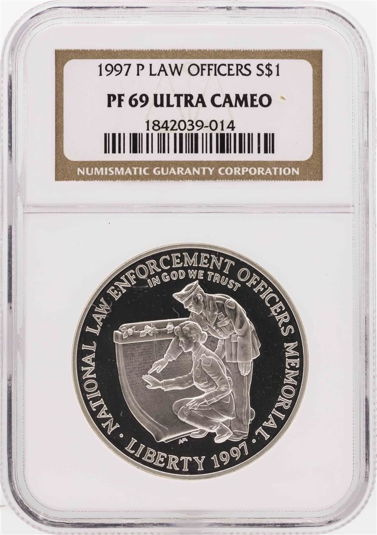 One 1997-P $1 Law Enforcement Officers Commemorative Silver Dollar Coin NGC PF69 Ultra Cameo. NGC Certified.