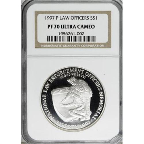 1997-P $1 Law Enforcement Silver Dollar MS70 NGC. NGC