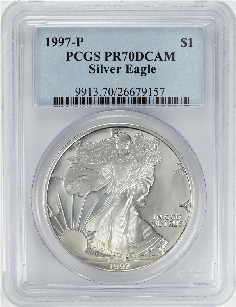 One 1997-P $1 Proof American Silver Eagle Coin PCGS PR70DCAM. PCGS Graded.