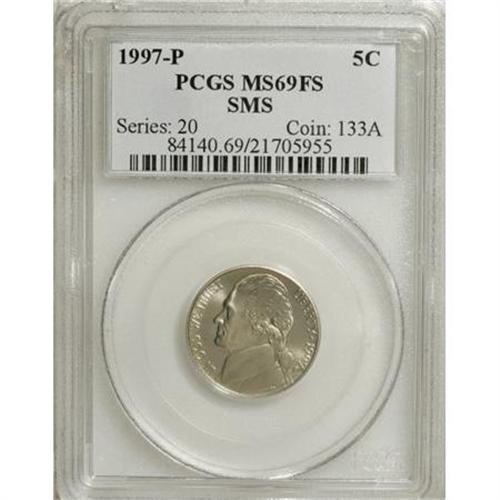 <B>1997-P 5C SMS MS69 Full Steps PCGS.</B></I> PCGS Population (631/76). NGC Census: (133/71). (#84140)<BR><BR><b>Shipping:</b> Coins & Currency (<a target="_blank" href="http://www.heritageauctions.com/common/shipping.php">view shipping information</a>)