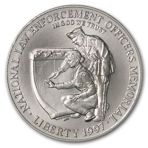 1997-P Law Enforcement $1 Silver Commemorative - MS-70 **|**|** Year: 1997 ; Mint Mark: MS-70 ; Grade: P - Philadelphia ; Denomination: 1 ; MSRP: $600