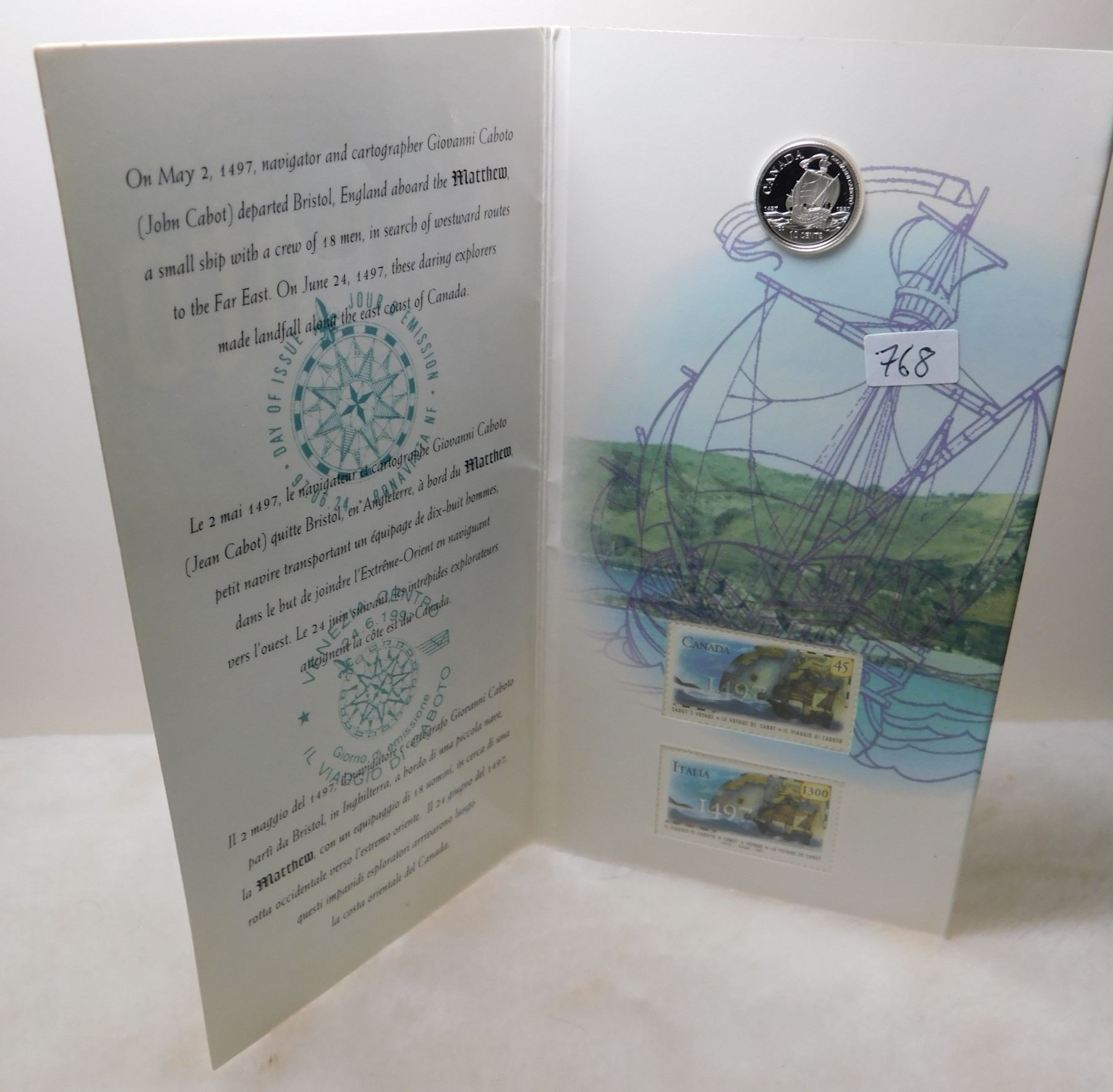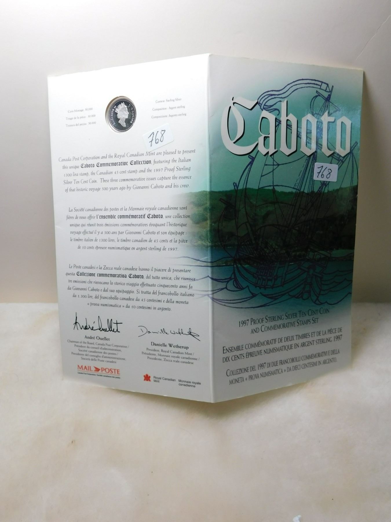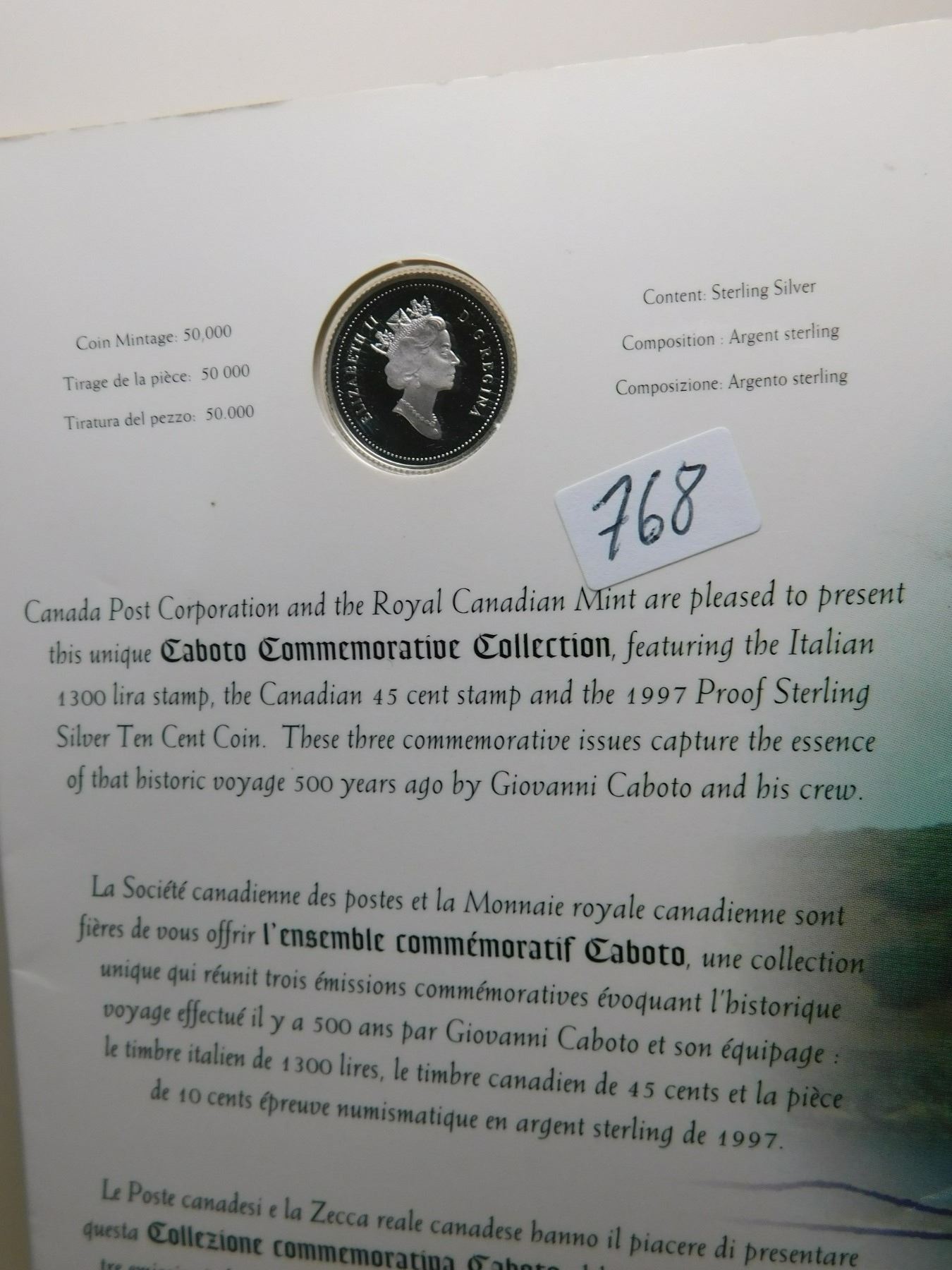 1997 PROOF STERLING SILVER CABOT 10 CENT STAMP AND COIN SET