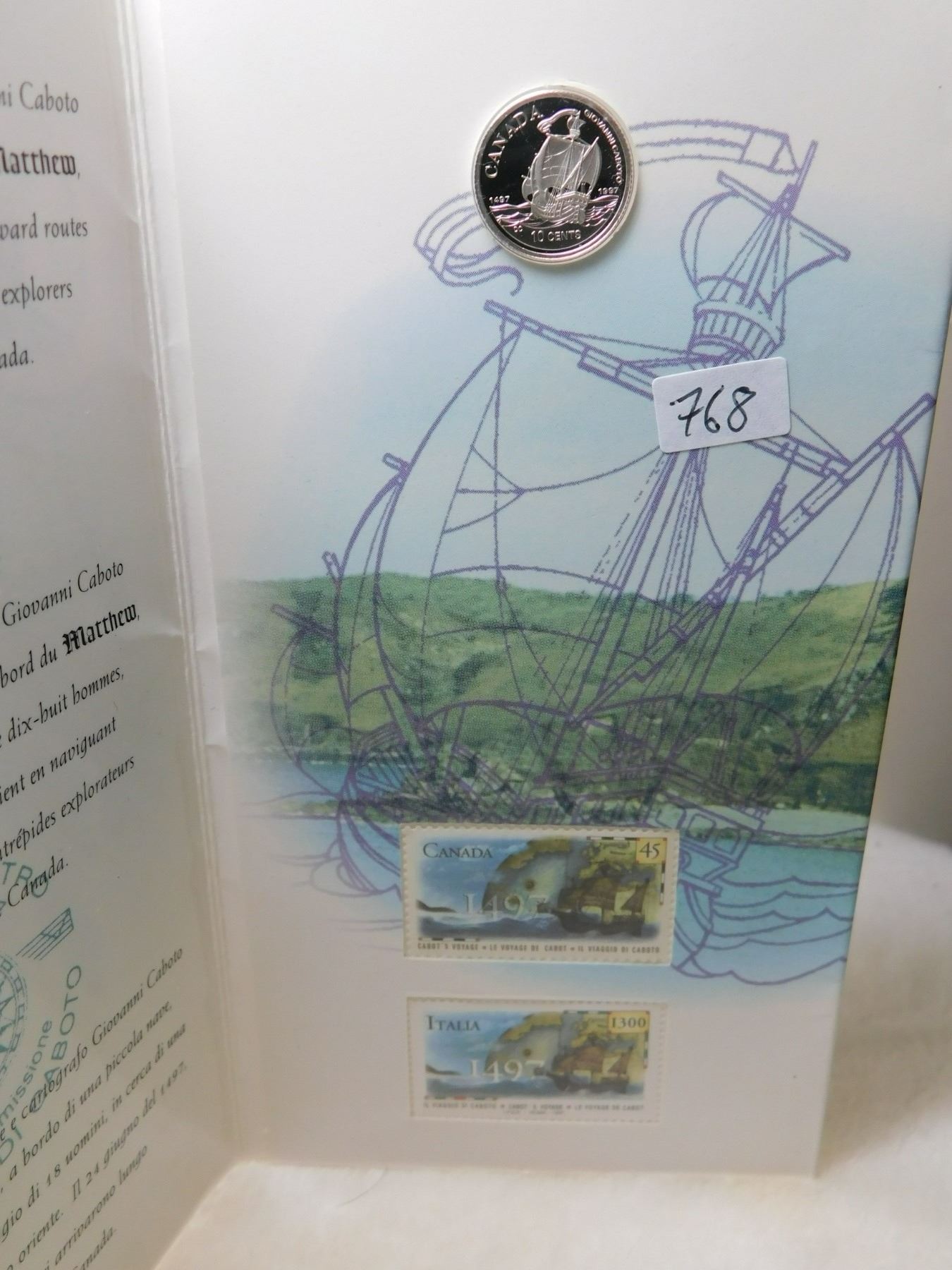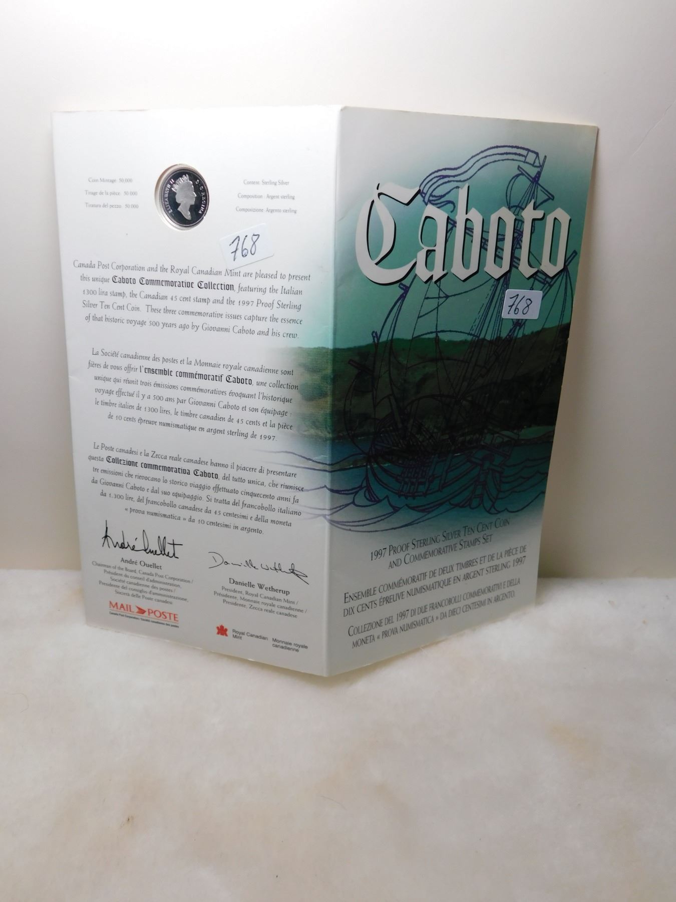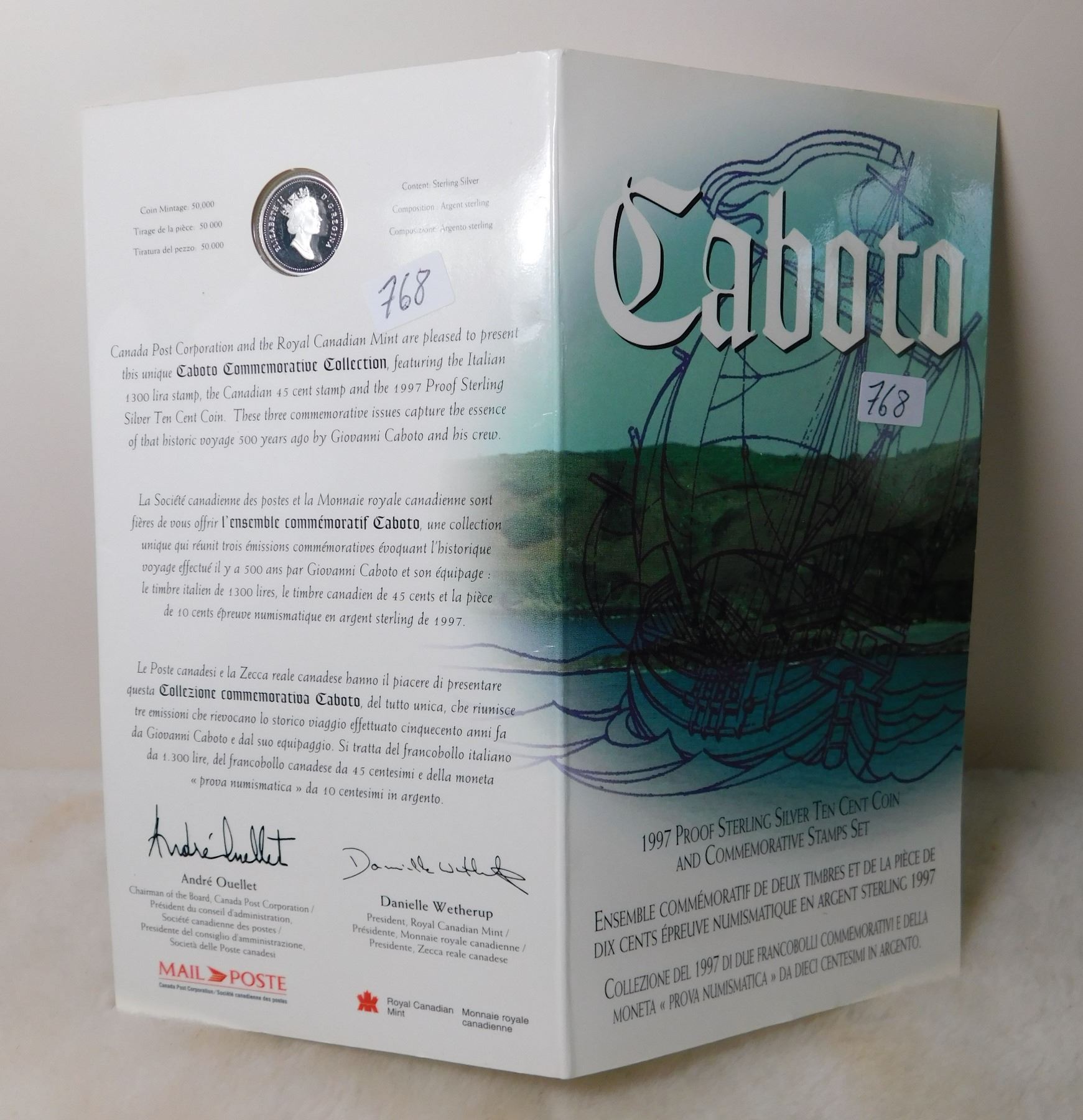 1997 PROOF STERLING SILVER CABOT 10 CENT STAMP AND COIN SET